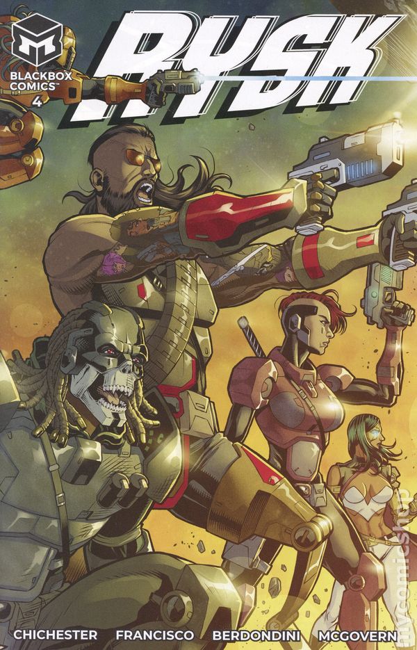 Written by D.G. Chichester. Art and Cover by Mannix Francisco. A murderous double-cross traps an injured Borsey, Bryar and Ruby deep inside the militarized medical lab. Mal's real objective is revealed to be a deadly new tech. As Mal's mercenaries close in, Ruby is forced to consider a radical scheme for survival, one that will almost certainly sacrifice Rysk's 'life. 20 pages, full color. Rated T+ Cover price $4.99.