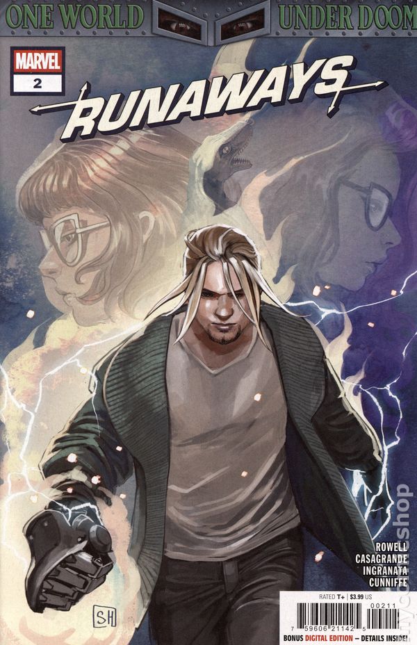 Written by Rainbow Rowell. Art by Elena Casagrande, Roberta Ingranata. Cover by Yasmine Putri. CHASE STEIN: BACK FROM THE FUTURE! Chase is back, looking more dangerous and broodier than ever! But what happened in the future that's got him so suspicious of Gert? And how long can the Runaways keep running away from the will of Doom? 28 pages, full color. Rated T+ Cover price $3.99.