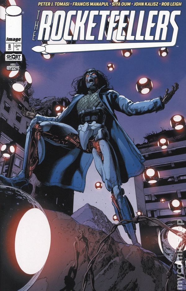 Written by Peter J. Tomasi, Francis Manapul. Art by Siya Oum, Francis Manapul, John Kalisz. Cover by Francis Manapul. As the Rocketfeller family struggles with all the insanity in the year 2025, we look to the year 2425! Before their death-defying escape to the 21st century, discover what caused them to flee all that they know and love: the wrathful rage of Roland's sister, RAINA ROCKETFELLER! 32 pages, full color. Rated T Cover price $3.99.
