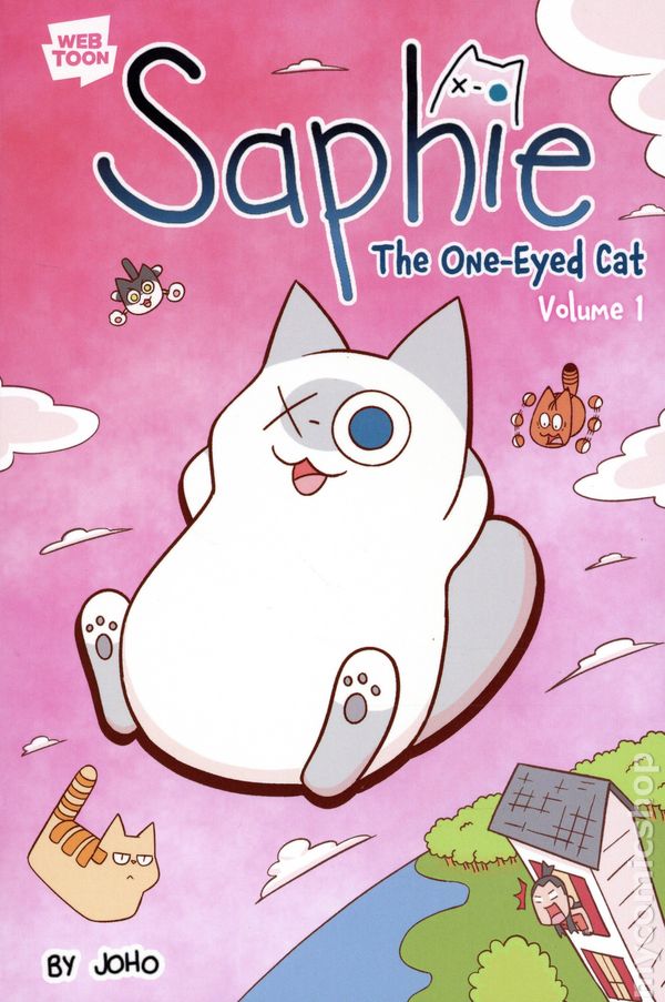 Volume 1 - 1st printing. Story and art by OHO. The hilarious hit Webtoon is now a graphic novel! Join Saphie the One-eyed Cat and her fellow house cat siblings as they zoom, scratch, and nap their way through life. It's purr-fect for fans of Pusheen! What exactly does a one-eyed cat do all day? Well, there's running, knocking things over, scratching things you're not supposed to, terrorizing your brothers, messing with your owner, stealing food, and generally causing mayhem left, right, and center! Saphie the One-Eyed Cat is a hilarious look at the life of a cat that knows what she wants -- and what she wants is to mess around! Softcover, 6-in. x 9-in., 128 pages, full color. All Ages Cover price $12.99.