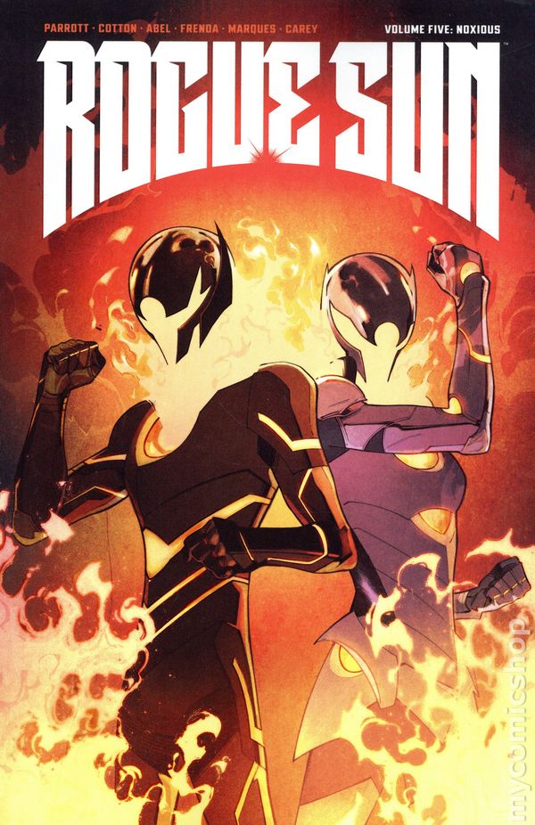 Volume 5 - 1st printing. "Noxious!" Collects Rogue Sun (2022 Image) #25-29. Written by Ryan Parrott and Nick Cotton. Art by Abel and Bruno Frenda. Cover by Abel. Since his father died, Dylan has defended New Orleans as the one and only ROGUE SUN. Now, his half-sister Aurie has joined him in her own suit of armor, but a familiar presence lurks at the source of her power, and a new foe threatens to tear the siblings apart—if he doesnt destroy them first. Softcover, 144 pages, full color. Rated T+ Cover price $17.99.