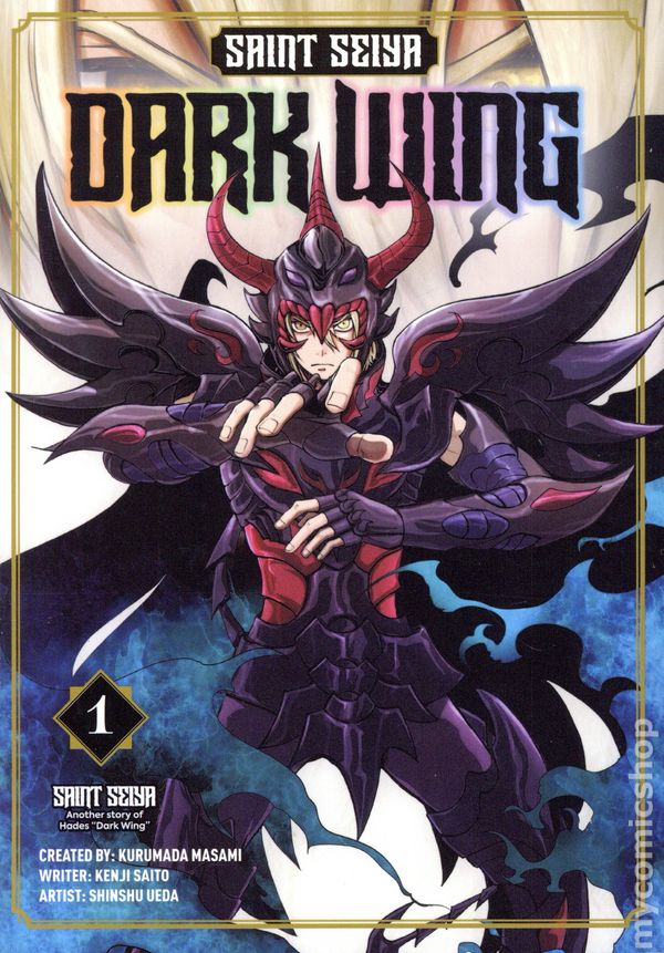 Volume 1 - 1st printing. Created by Kurumada Masami. Written by Kenji Saito. Art and cover by Shinshu Ueda. FROM THE SAME UNIVERSE AS THE HIT ANIME! SPINNING OUT OF THE LEGENDARY SAINT SEIYA FRANCHISE! Shoichiro was just another high school student. Now, hes one of the dreaded judges of the underworld, chosen to battle against the forces of Athena! When an unexpected ambush during a school trip sends Shoichiro and his classmates into the land of the dead, they are thrust into a fierce struggle beween the gods and their warriors. A thrilling new chapter in the Saint Seiya universe, Saint Seiya: Dark Wing brings the epic clash of gods, warriors, and hidden agendas to new heights. Softcover, 5-in. x 7-in., 208 pages, B&W. Mature Readers Cover price $12.99.