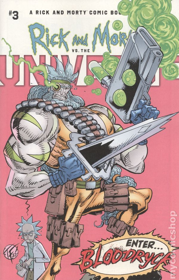 Limited 1 for 20 Retailer Incentive Variant Cover. Written by Daniel Kibblesmith. Art by Jarrett Williams. Cover by Tom Fowler. ENTER: BLOODRYCK! Rick and Mortys infinite secret crisis across many, many (and then some) Earths is about to get REALLY crazy as chaos-incarnate creators Daniel Kibblesmith (Loki) and Jarrett Williams (Speed Force) launch an overmuscled, overpowered, self-aware, power-fantasy version of Rick hell-bent on killing every other copy of himself into the midst of Rick and Mortys first-ever summer event! In order to escape, hell have to recruit an expendable squad of NON-CANONICAL RICKS all from outside of continuity. Youve heard of the DIRTY DOZEN, now meet the NON-CANONICAL NINE! For those of you in the back: Yes, thats nine—count em—nine obscure Ricks from outside any continuity weve ever encountered before. And all of them are on the run from Bloodryck! Wait, this is the first appearance of BLOODRYCK and THE NON-CANONICAL NINE, too? If youre thinking what were thinking, surely this comic will be worth one billion dollars one day. Buy three (and thank us later)! 28 pages, full color. Mature Readers Cover price $4.99.