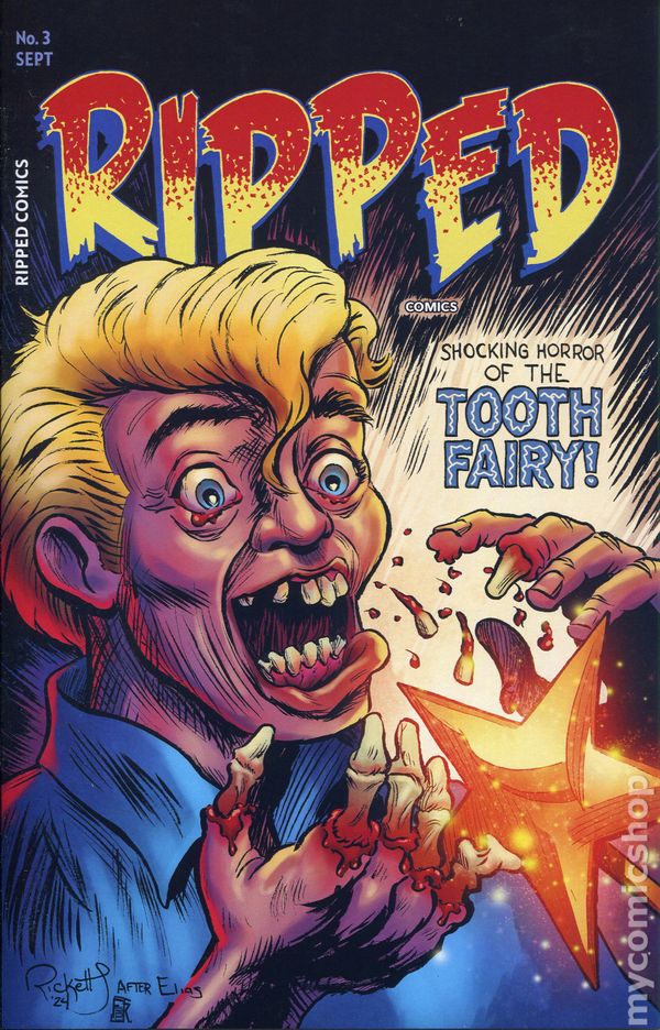 Written by Steve Ricketts. Art and Cover by Steve Ricketts. Coloring by Federico Pepto Sioc Jr. After failing to stop the "Whatever Bitches" in RIPPED #2, our hero trained, focused, and... leveled up his gas. In Ripped #3, he discovers he can fly thanks to his Unique digestive gift and meets the mysterious swamp sorceress, Trixie LaCroix-aka the Tooth Fairy, whos packing a magical wand the size of a canoe paddle. The world of Uniques just got weirder! 32pgs. FC