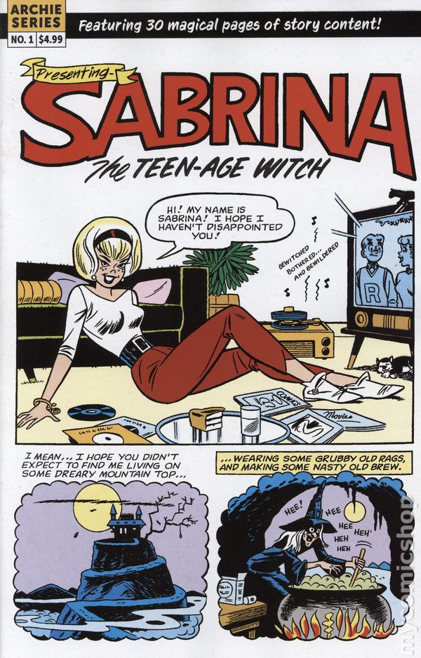Written by Craig Boldman, Various. Art by Steven Butler, Lily Butler, VARIOUS. Cover by Dan DeCarlo. Now packed with 30 PAGES of story content, including a BRAND NEW STORY! Sabrina's greatest foe, the evil witch Mother Striga, is back and this time she's enlisted the aid of the wicked scientist Mad Doc Doom and his daughter Medusa! Will the powers of science be too much for Sabrina's magic, and who can she turn to for help? 32 pages, full color. Cover price $4.99.