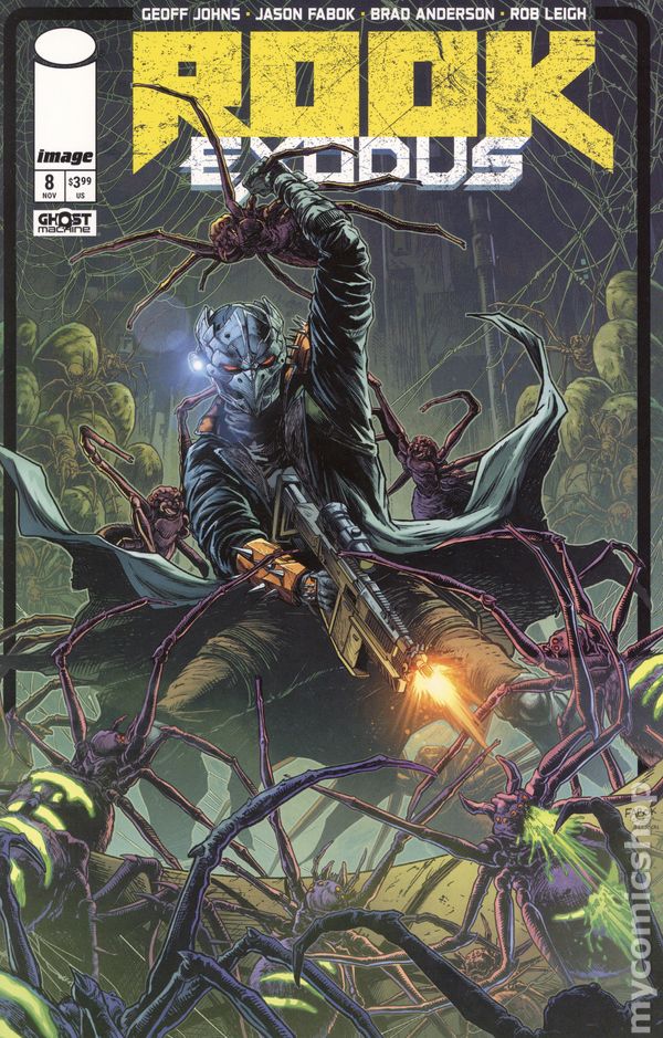 (W) Geoff Johns (A) Jason Fabok, Brad Anderson (CA) Kael Ngu The critically-acclaimed hit sci-fi series continues! The mission to save Bloodhound leads Rook, Dire Wolf, and Matterhorn into the deepest tunnels of Exodus…where Arachnid awaits. Thousands of mutated spiders swarm from the shadows, threatening to end mission to save the planet. And when the mysterious Warden known as Stag makes his move, another Warden may not make it out alive. 32 pages, full color, rated T. Cover price $3.99.