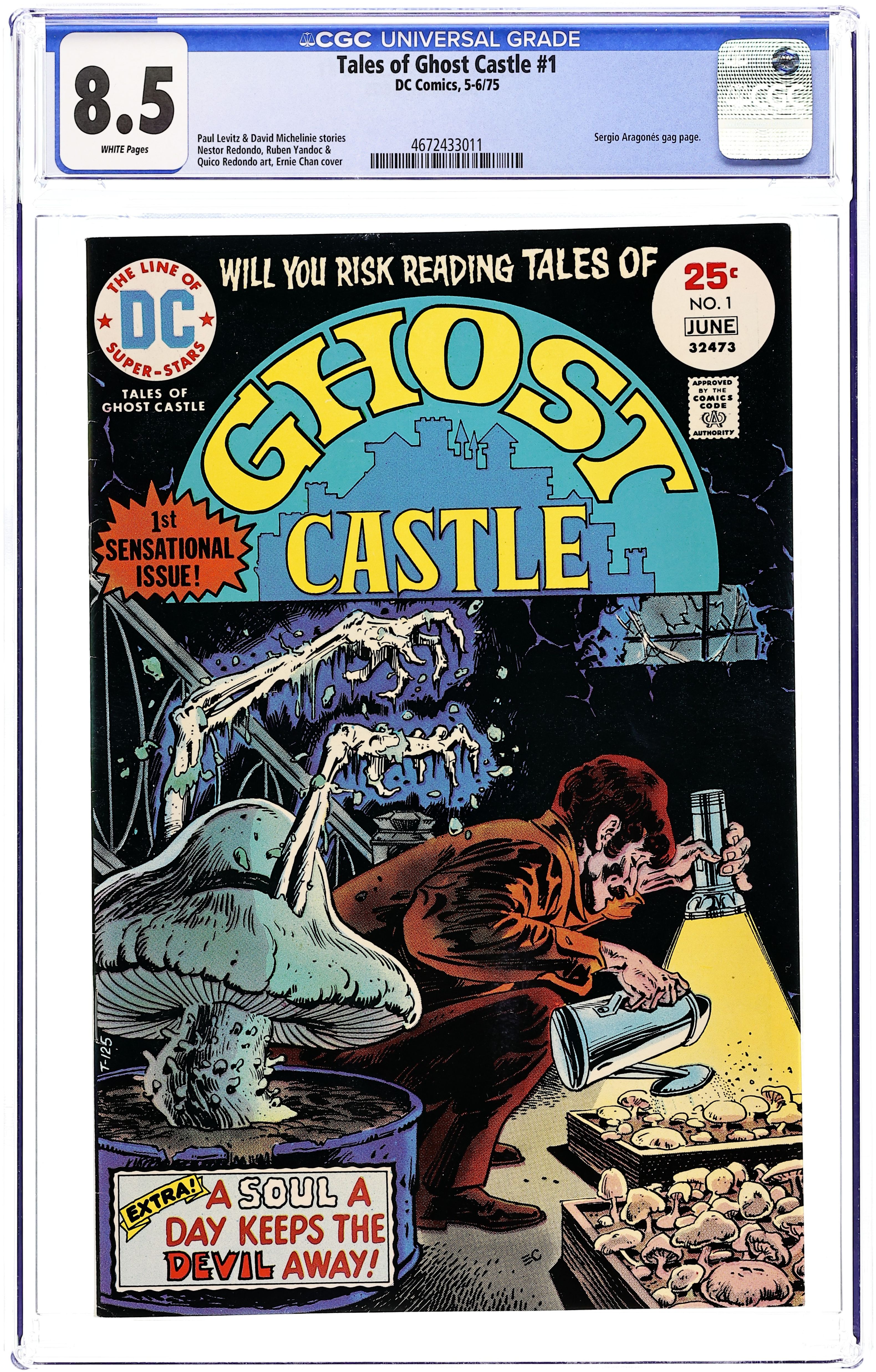 Stories and art by Oscar Fraga, Torre Repiso, Cirilo Munoz, Violet M. Methley and Ezra Jackson. Legendary publisher Eerie presents gory tales of horror and the macabre, many "reanimated" from classic pre-Code horror comics with new art. A vampire bat in a theater's wings is actually a vampire. A man inherits a cursed castle and ignores all the warnings. Explorers seeking the elephant's graveyard are haunted by a ghost. Vampire; Torture Castle; Weird Safari; The Old Hag's Claws of Horror; This Tomb Is Ours; Monster in White; Werewolf Castle; The Ghoul and the Guest. 8 1/2-in. x 11-in. 48 pages, B&W. Mature readers Cover price $0.50.
