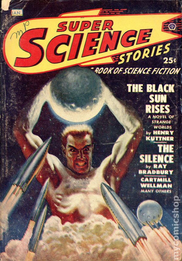 Vol. 5 #1 - Jan. 1949. Novel: "The Black Sun Rises" by Henry Kuttner. Novelettes: " Moonworm's Dance" by Stanley Mullen, "The Bounding Crown" by James Blish, "A Handful of Stars" by Walter Kubilius. Short Stories: "The Silence" by Ray Bradbury, "The Other" by Sanford Vaid, "The Sky Will be Ours" by Manly Wade Wellman, "Cabal" by Cleve Cartmill. Cover by Lawrence Sterne Stevens. Illustrations by Lawrence, Virgil Finlay, and Hannes Bok. 7-in. x 9 1/2-in. 130 pages, B&W. Cover price $0.25.