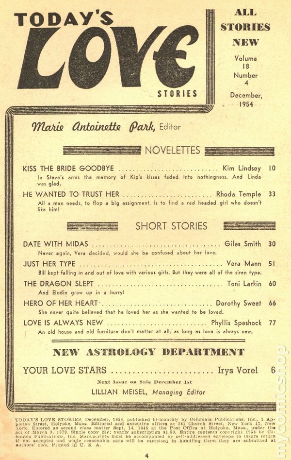Published Dec 1954 by Columbia Publications.