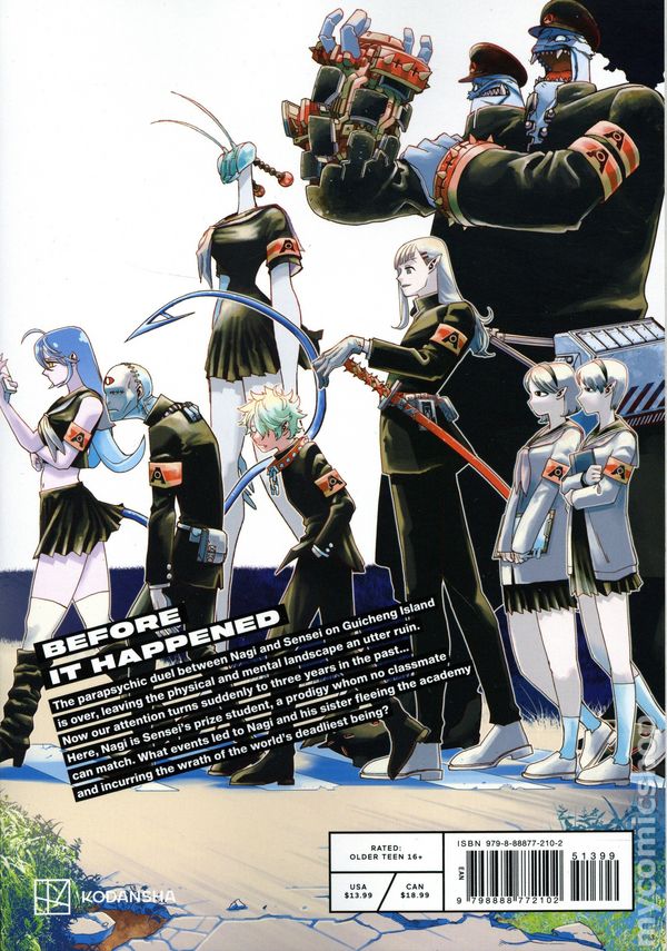 Volume 4 - 1st printing. Story and art by Manabu Yashiro. Translated by Max Greenway. The parapsychic duel between Nagi and Sensei on Guicheng Island is over, leaving the physical and mental landscape an utter ruin. Now our attention turns suddenly to three years in the past... Here, Nagi is Sensei's prize student, a prodigy whom no classmate can match. What events led to Nagi and his sister fleeing the academy and incurring the wrath of the world's deadliest being? Softcover, 5 1/2-in. x 8-in., 192 pages, B&W. Mature Readers Cover price $13.99.