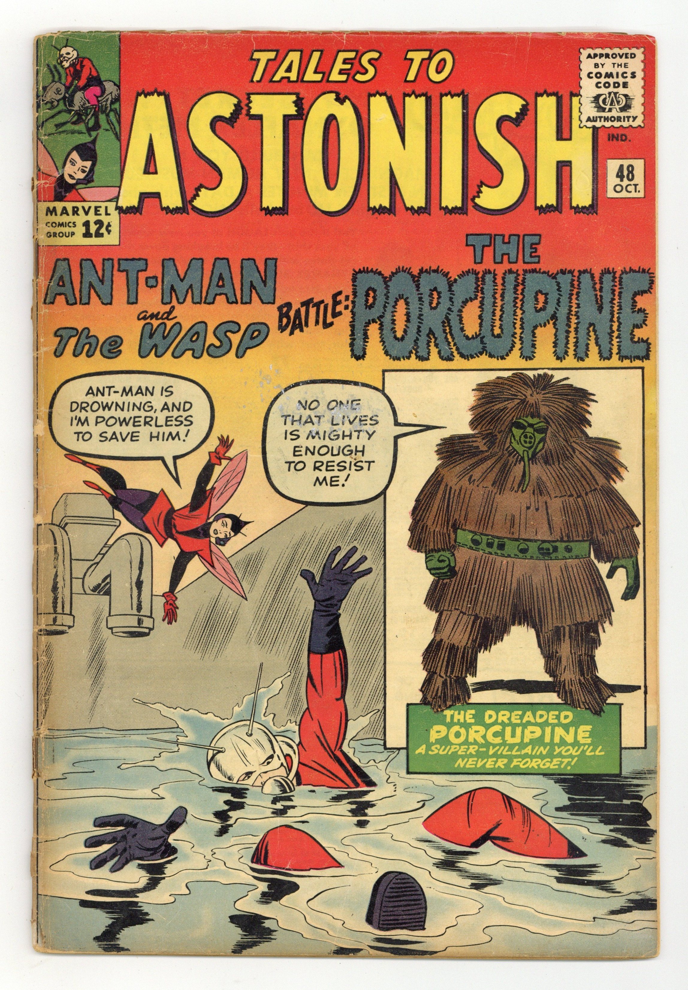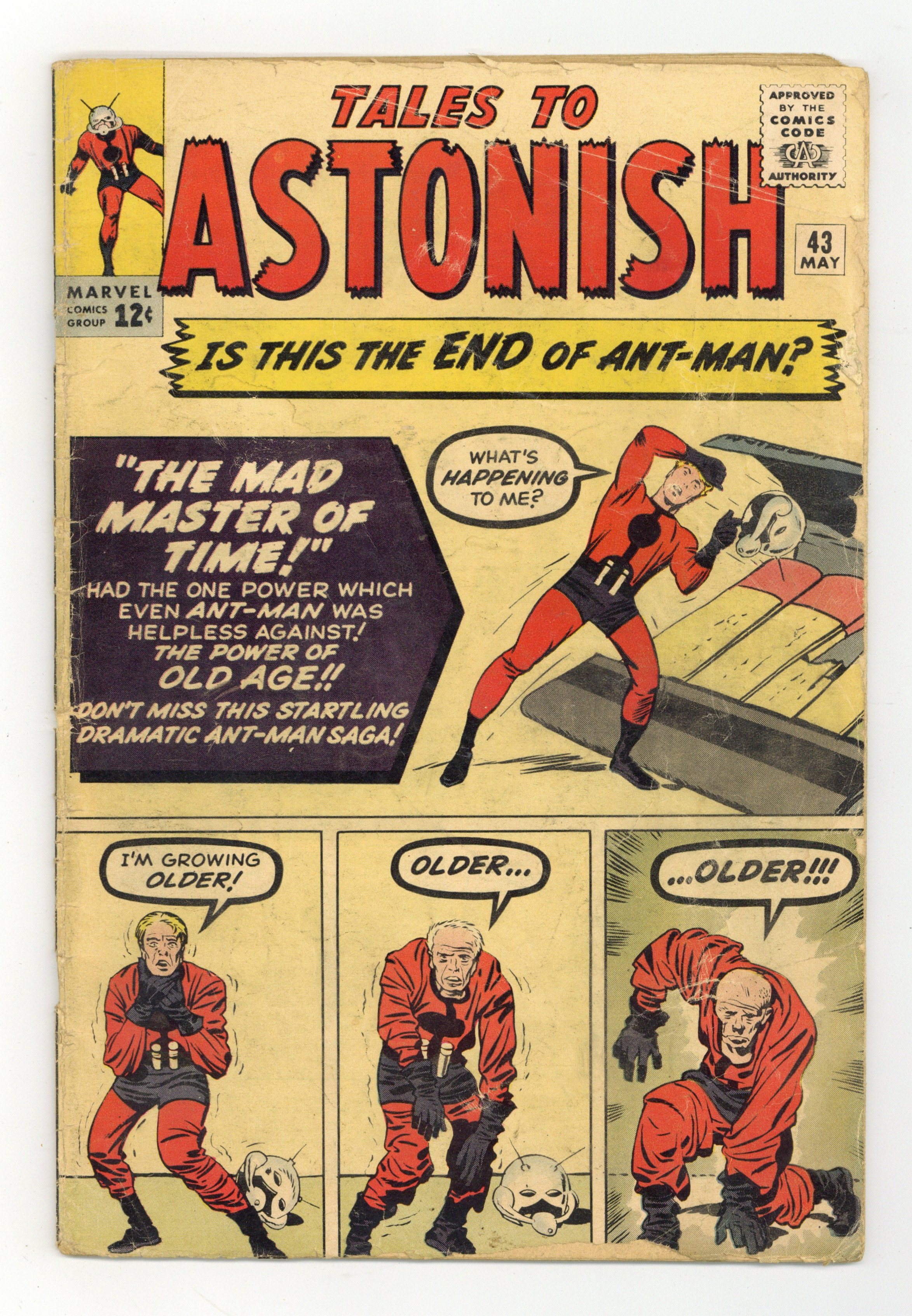Cover by Jack Kirby and Dick Ayers. Trapped by the Protector! Part 1, script by Stan Lee and Larry Lieber, art by Jack Kirby and Dick Ayers; Ant-Man deals with a dangerous extortionist, who turns out to be disguised as one of the victimized jewelers. [Trapped by the Protector!, Part 2:] Face-to-Face With the Protector!, script by Stan Lee and Larry Lieber, art by Jack Kirby and Dick Ayers. The Magician text story. Afraid to Dream!, art by Don Heck; A man whose dreams come true is terrified when he dreams his own death. The Star Raiders, script by Stan Lee, art by Steve Ditko; A group of escaped convicts turned pirates are tricked into attacking a planet they believe defenseless by a man who claims the inhabitants are midgets neglecting to mention that they are only midgets compared to him. 36 pgs., full color. $0.12. Cover price $0.12.