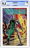Written by James Robinson. Art by Jackson Guice and John Beatty. Cover by John Higgins. The half-Terminator Dudley and Colonel Mary Randall are reunited finally, as they resume their quest to save Sarah Connor and ensure the birth of her son, John. But Dudley is having problems controlling his Terminator half -- and Mary finds out the hard way! The penultimate chapter in Dark Horse's final Terminator series moves inexorably toward a climactic encounter with the new Terminator on the block. James Robinson teams with pencil artist Jackson Guice (Nick Fury: Agent of SHIELD) and inker John Beatty. British artist John Higgins (The Thing from Another World) supplies the cover painting. 32 pages, FC. Cover price $2.50.