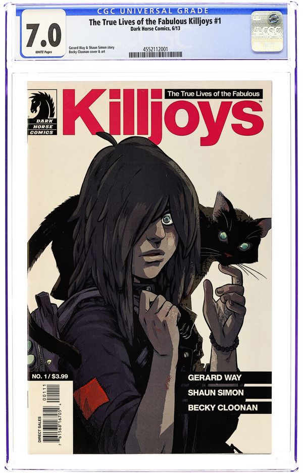 Cover by Becky Cloonan, Dan Jackson (W) Gerard Way, Shaun Simon (A) Becky Cloonan Years ago, the Killjoys fought against the tyrannical megacorporation Better Living Industries, costing them their lives, save for one-the mysterious Girl. Today, the followers of the original Killjoys languish in the Desert while BLI systematically strips citizens of their individuality. As the fight for freedom fades, it's left to the Girl to take up the mantle and bring down the fearsome BLI or else join the mindless ranks of Bat City! Cover price $3.99.