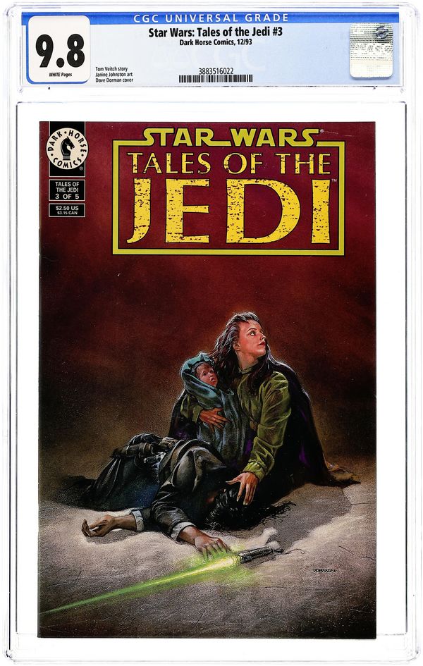 NOT Polybagged /May or may NOT include card - Written by Tom Veitch and Kevin J. Anderson. Art by Chris Gossett and Mike Barreiro. Cover by Dave Dorman. In the remote reaches of the Star Wars universe, an ancient and deadly power has been reawakened by a foolish and arrogant young Jedi. He will begin a quest to become a Dark Lord of the Sith, and every galaxy will be threatened by his power. 32 pages, FC. Cover price $2.50.