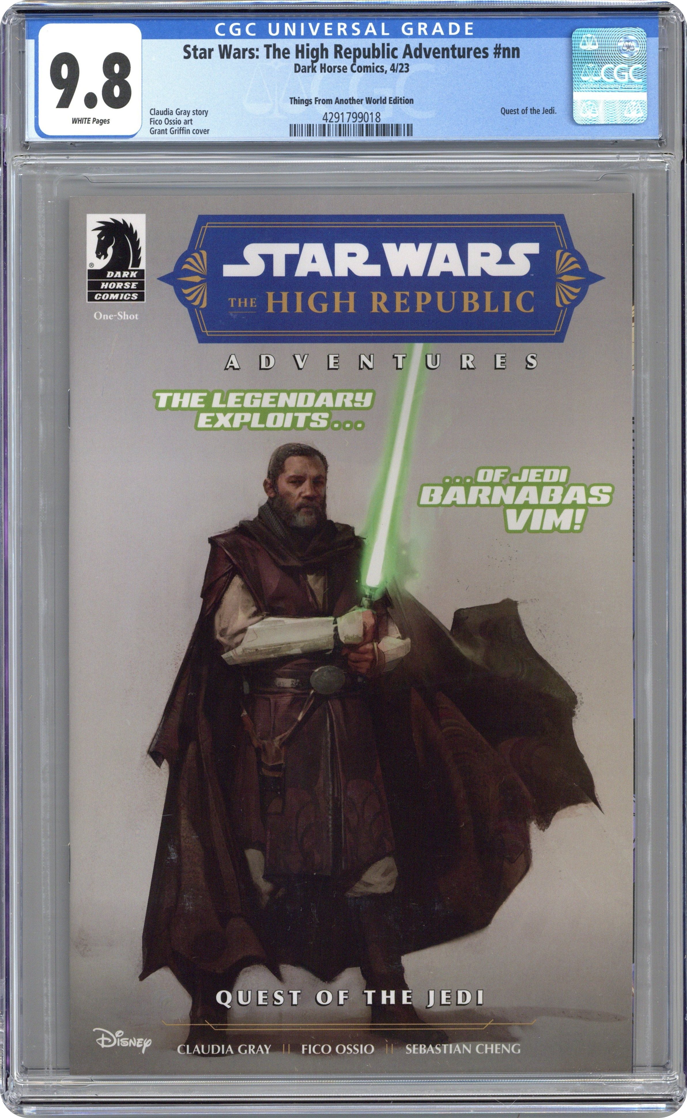 Things From Another World Exclusive Variant Cover by Grant Griffin. Written by Claudia Gray. Art by Fico Ossio. On the ancient world of Angcord, the Force works in unforeseen ways. When legendary Jedi Knight Barnabus Vim and his intrepid Padawan Bly arrive on this mysterious world, seeking an ancient artifact of the Force, they quickly find more than they were bargaining for. But just what is the mysterious Echo Stone, and what does its existence mean for the continued survival of all those who call Angcord home? 32 pages, full color.