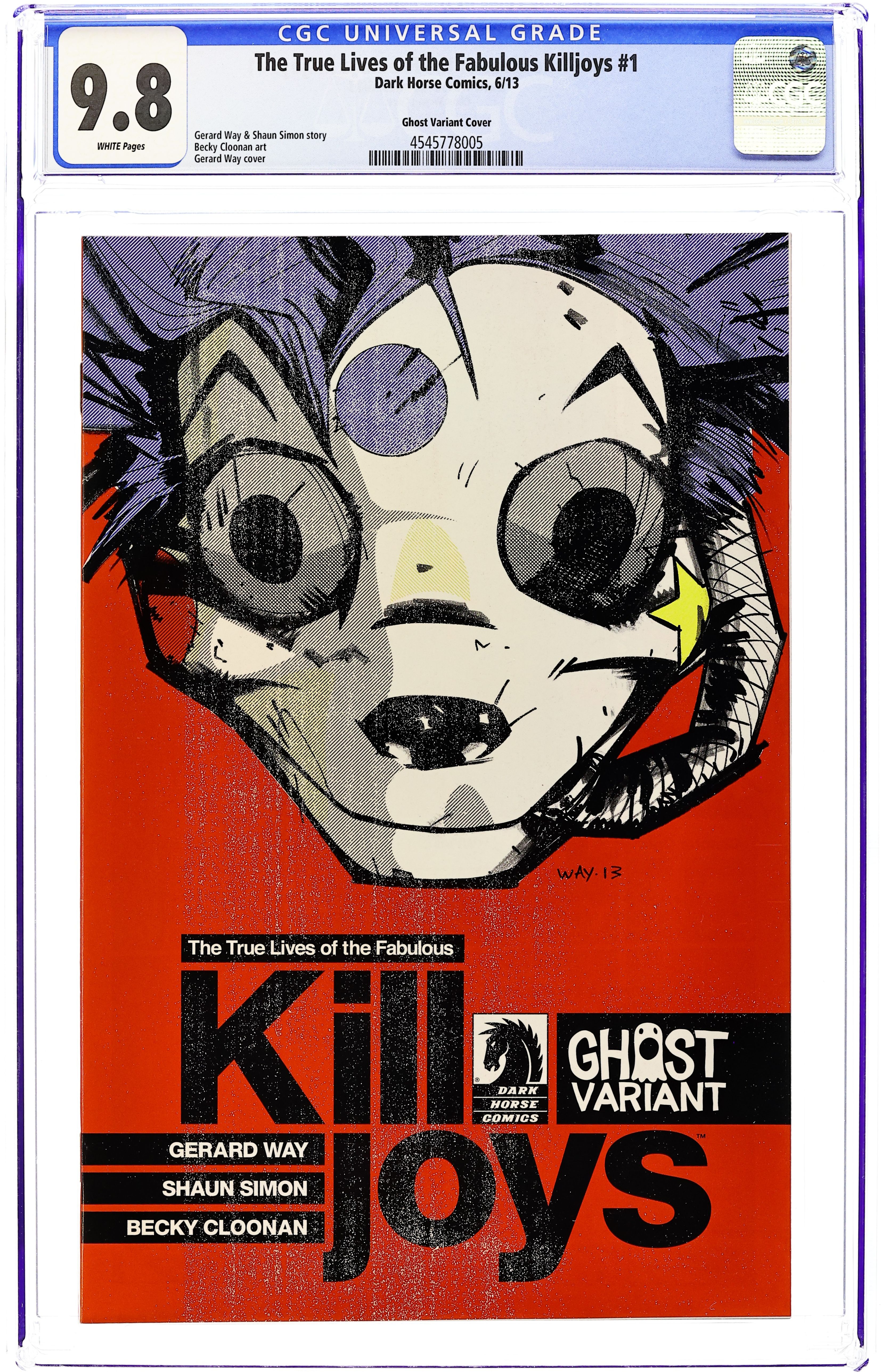 Ghost Variant Cover by Gerard Way (W) Gerard Way, Shaun Simon (A) Becky Cloonan Years ago, the Killjoys fought against the tyrannical megacorporation Better Living Industries, costing them their lives, save for one-the mysterious Girl. Today, the followers of the original Killjoys languish in the Desert while BLI systematically strips citizens of their individuality. As the fight for freedom fades, it's left to the Girl to take up the mantle and bring down the fearsome BLI or else join the mindless ranks of Bat City!