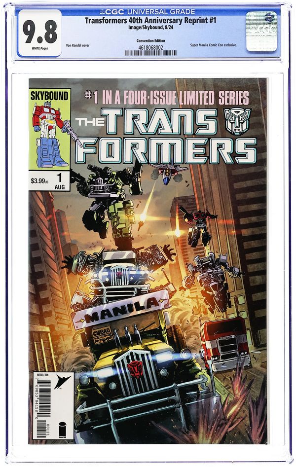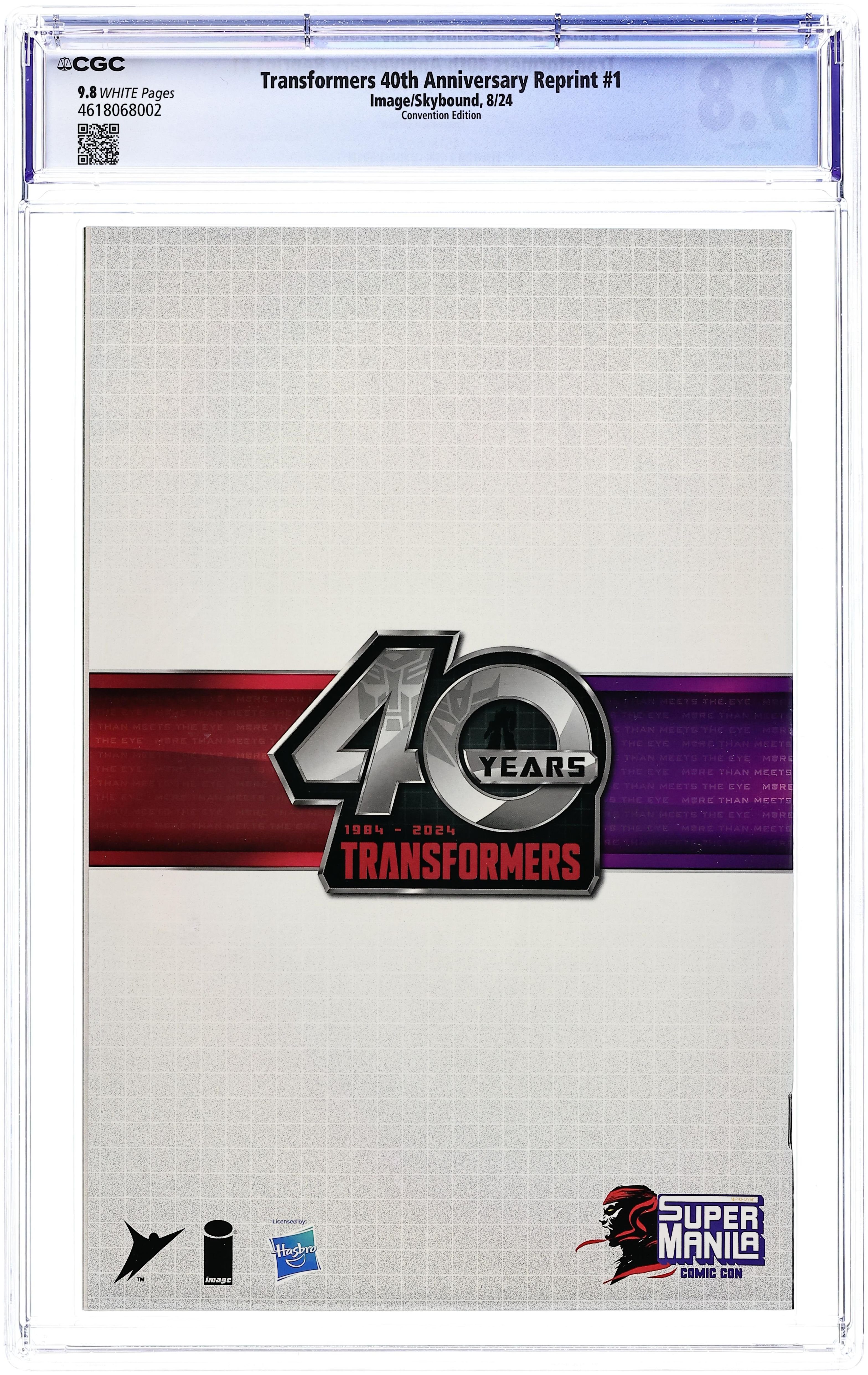 SuperManila Comiccon Exclusive cover by Randal Santos Espino - Limited to 1000 copies. Written by Ralph Macchio, Bill Mantlo. Art by Frank Springer & Various. Celebrate the 40th anniversary of the Transformers with a new printing of the comic book that started it all! The Autobots and Decepticons have brought their conflict to Earth-and the world will never be the same again! This issue will be printed on newsprint and will feature an all-new variant cover celebrating the history of the Transformers! 32 pages, full color. Rated T. Cover price $3.99.