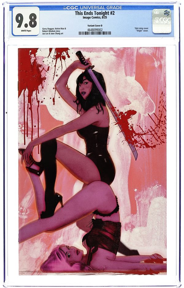 Limited 1 for 50 Retailer Incentive Variant Cover. Written by Gerry Duggan. Art by Jae Lee, June Chung. Cover by Tula Lotay. The smash hit grindhouse revenge tale of the summer careens through Las Vegas. THIS ENDS TONIGHT has murder, mayhem, action, comedy, exotic dancers, exotic animals, gun shows both literal and figurative—THIS ONE HAS IT ALL! Superstar** JAE LEE (Inhumans) has never been better as he carries around Gerry Duggan (Deadpool**). Get on board the party bus and grab yourself a weapon, 'cause the bad guys mean business. 32 pages, full color. Rated M Cover price $4.99.