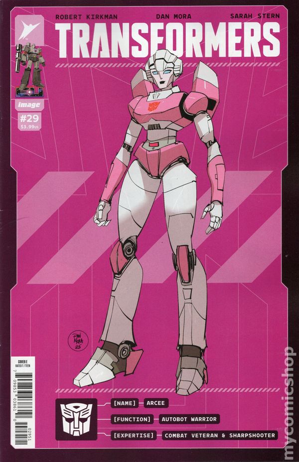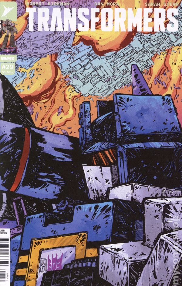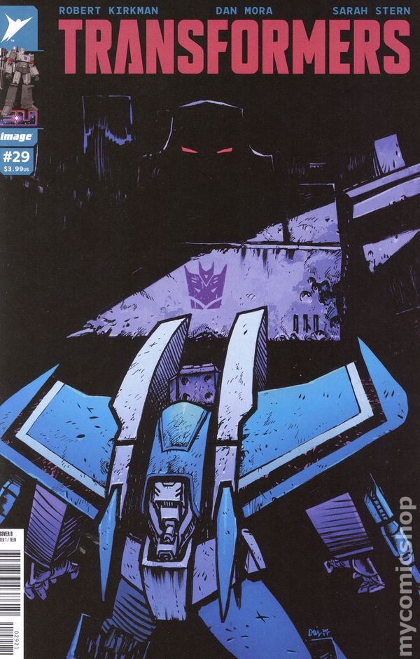 (W) Robert Kirkman (A) Dan Mora, Mike Spicer (CA) Daniel Warren Johnson, Mike Spicer AUTOBOTS VS DECEPTICONS! And only [SPOILER] can turn the tide… 32 pages, full color, rated teen. Cover price $3.99.