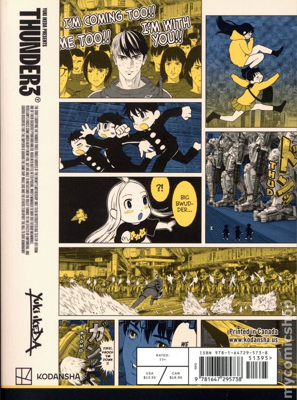 Volume 7 - 1st printing. Story and art by Yuki Ikeda. Translated by Cat Anderson. An amazing blend of art styles combine with hard-SF elements and meta-comedy to create a comic truly unlike any other! The THUNDER THREE and Rebellion vs. the Invaders! The craft carrying the Thunder Three finally arrives at the enemy's mothership, only to be intercepted due to a tip-off from one of their soldiers! Pyontaro and co. rush into battle after Pusuke, who's managed to sniff out Futaba! Meanwhile, Rebellion's forces come under heavy enemy fire, but are able to withstand the volley thanks to the effects of Empoweral. And Gaudou discovers that the emperor is aboard the same ship, while Doc and the others tear apart the hull to save humankind! Softcover, 5-in. x 7-in., 192 pages, B&W. Rated 13+ Cover price $13.95.