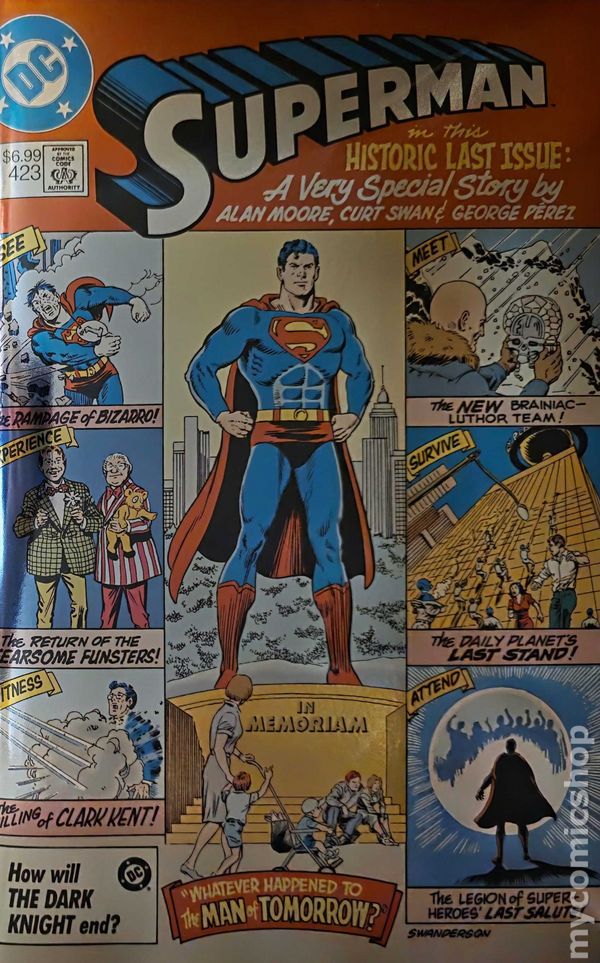(W) Alan Moore (A) Curt Swan (CA) Curt Swan ALAN MOORE'S GROUNDBREAKING STORY! Whatever Happened to the Man of Tomorrow? begins the final, farewell story of the Silver Age Superman, as told by legendary scribe Alan Moore. Acclaimed by many to be the finest Superman story ever written, this classic tale is a bittersweet love letter to both Superman and super fans alike. 32 pages, full color, rated 13+. Cover price $3.99.
