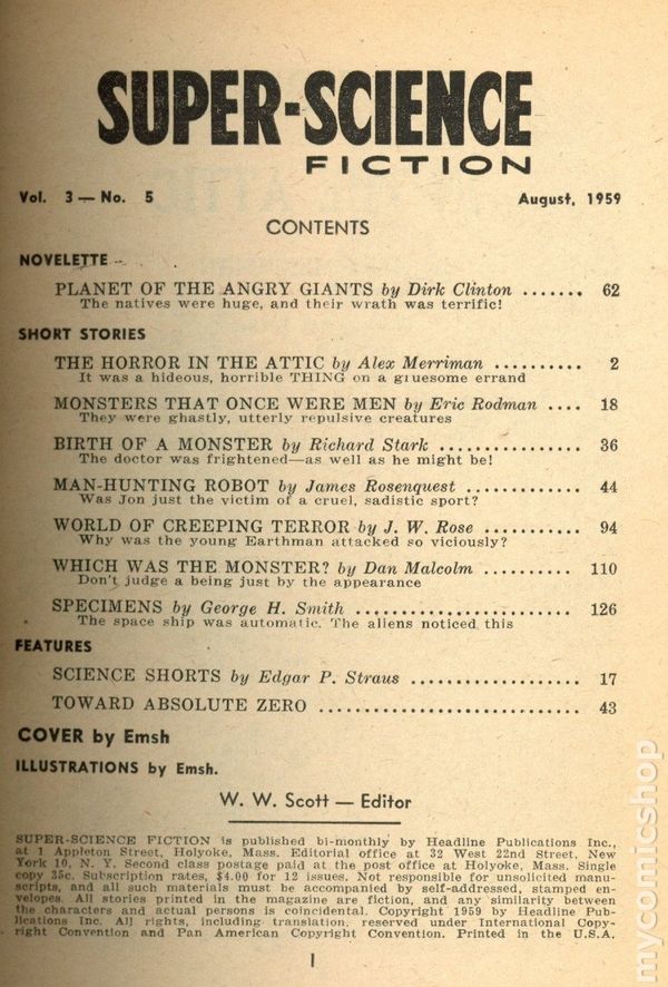 Published Aug 1959 by Atlas Magazines, Inc..$17.00