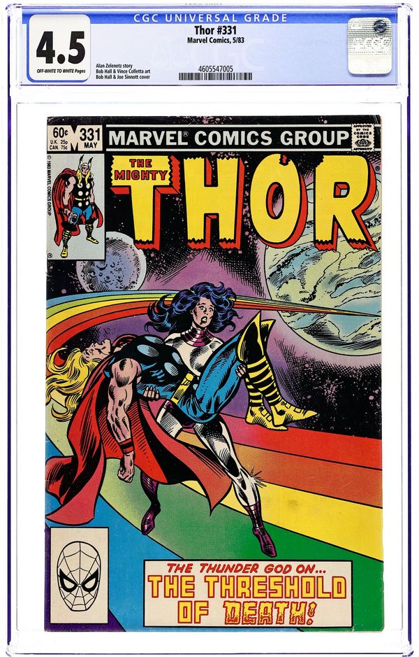 Direct Edition. Cover pencils by Bob Hall, inks by Joe Sinnott. Thor continues battling the Crusader in "Holy War," script by Alan Zelenetz, pencils by Bob Hall, inks by Vince Colletta; Thor is wounded by the Crusader and Sif takes him to Asgard to be healed by Odin; Upon his return Thor defeats the Crusader. Bullpen Bulletins. 36 pgs., full color. $0.60. Cover price $0.60.