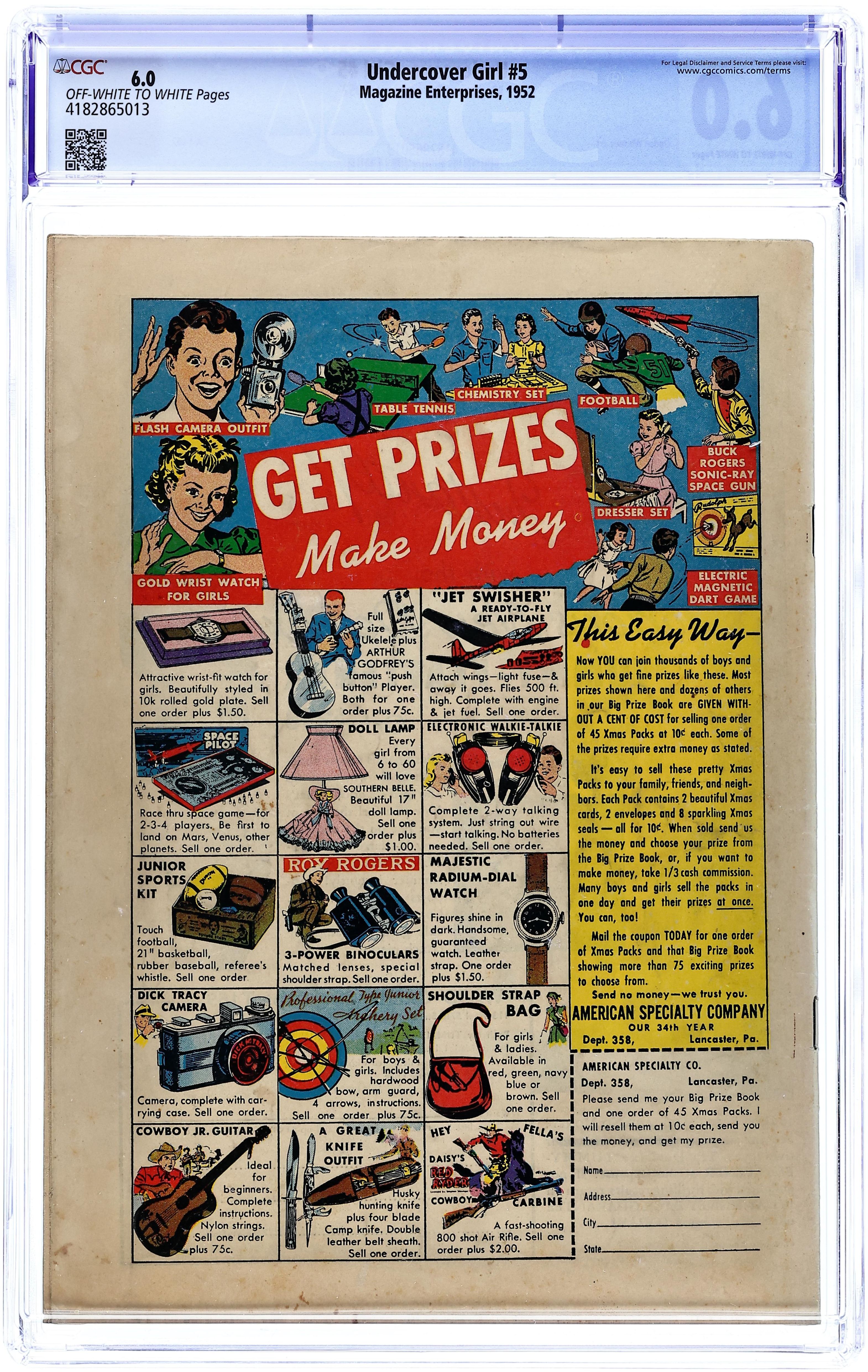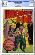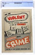 Stories and art by Bill Woolfolk and Jess Cole. Classic pre-Code crime comics from Fawcett. Police are unable to topple the masked and mysterious Black Hand gang, but lone citizen John Stephens wages a one-man campaign of vengeance to bring them down. Ace and Killer agree to take the rap for a warehouse job in exchange for a cash payoff, but a cop goes undercover in prison to see if he can get Killer to crack. Moonshiner Poison Mike has souped-up the roadster he uses to escape the Feds on winding mountain roads, to deadly effect. Cover, possibly by Edd Ashe, contains elements of bondage and the ol' injury-to-the-eye motif. Two Bullet Holes; The Man Who Broke The Black Hand; Muscle Hedd; Careless Clara; Trapped!; Surgeon Sturgess; Important Man Manners; The Saga of "Poison" Mike McCroy. Final issue of the series. 32 pages, Full Color. Cover price $0.10.