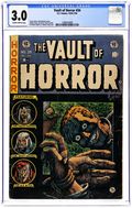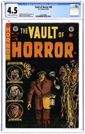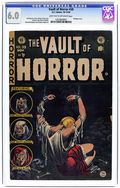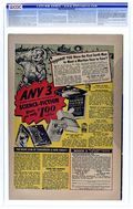 Stories and art by Matt Baker and others. Ajax-Farrell's horror series Voodoo managed to stand out in the crowded field of pre-Code horror comics by dint of its sheer weirdness. A heroic jungle girl visits an island to find the magical Drum of Life, in a story with art by Matt Baker. Archaeologists ill-advisedly revive the feathered serpent-god Quetzalcoatl. A British soldier returns to the Irish lands where his ancestor ordered a massacre, and learns the horrifying secret of the bog people. Drums of Doom; The Crawling Horror; Jewels of Death; Thief of Souls; Beasts of the Bog. 36 pages, Full Color. Cover price $0.10.