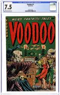 Ajax-Farrell's horror series Voodoo managed to stand out in the crowded field of pre-Code horror comics by dint of its sheer weirdness. Three men spend the night in a haunted lighthouse. A wife's hatred of her husband's undertaking job drives her murderously insane. A woman poisons her lover's wife, resulting in madness and revenge from the beyond the grave. Corpses of the Jury; Death Light?; Man-Killer; Ghoul for a Day; The Spiteful Spirit. 36 pages, Full Color. Cover price $0.10.