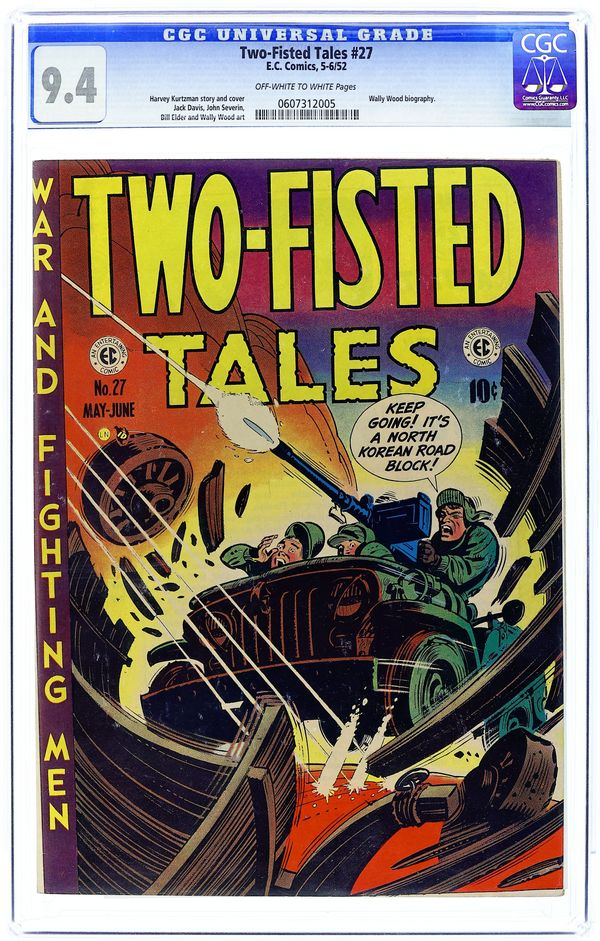 Cover by Harvey Kurtzman. Stories by Harvey Kurtzman and Al Feldstein. Art by John Severin, Will Elder, Wally Wood, Jack Davis, and Harvey Kurtzman. Harvey Kurtzman's legendary series enlisted top EC artists for gritty tales of war and adventure. A naive lieutenant leaves himself open to sniper attacks in Korea, in a story with inks by MAD legend Will Elder. The real-life story of the legendary ascent of the US Rangers up the cliffs of Pointe Du Hoe during the Normandy Invasion. A member of the 7th Cavalry witnesses Custer's Last Stand, with art by Wally Wood. Plus The EC "Artist of the Issue" featuring Wally Wood. Luck!; Custers Last Stand; Escape Plot; D-Day!; Jeep! 36 pages, Full Color. Cover price $0.10.