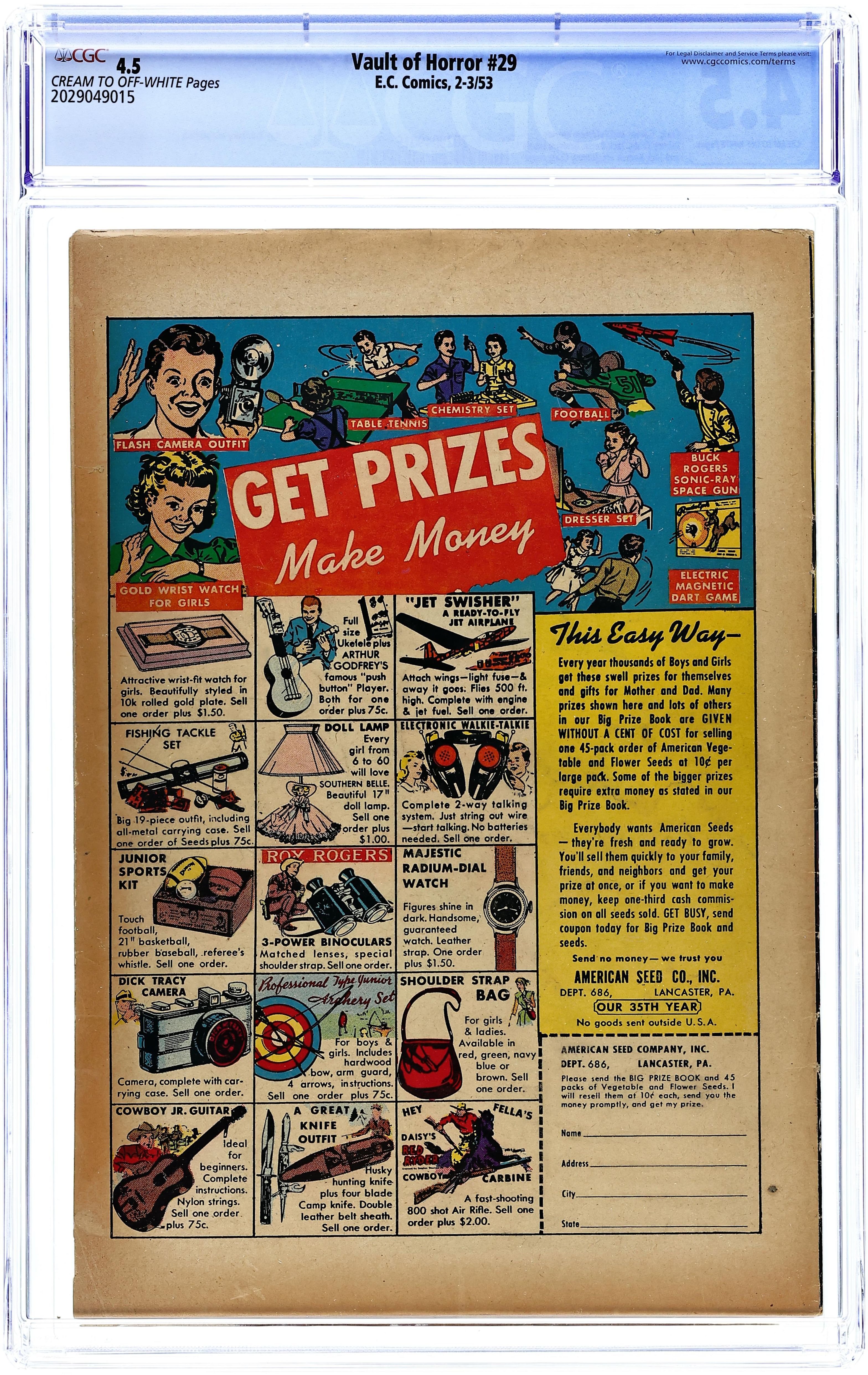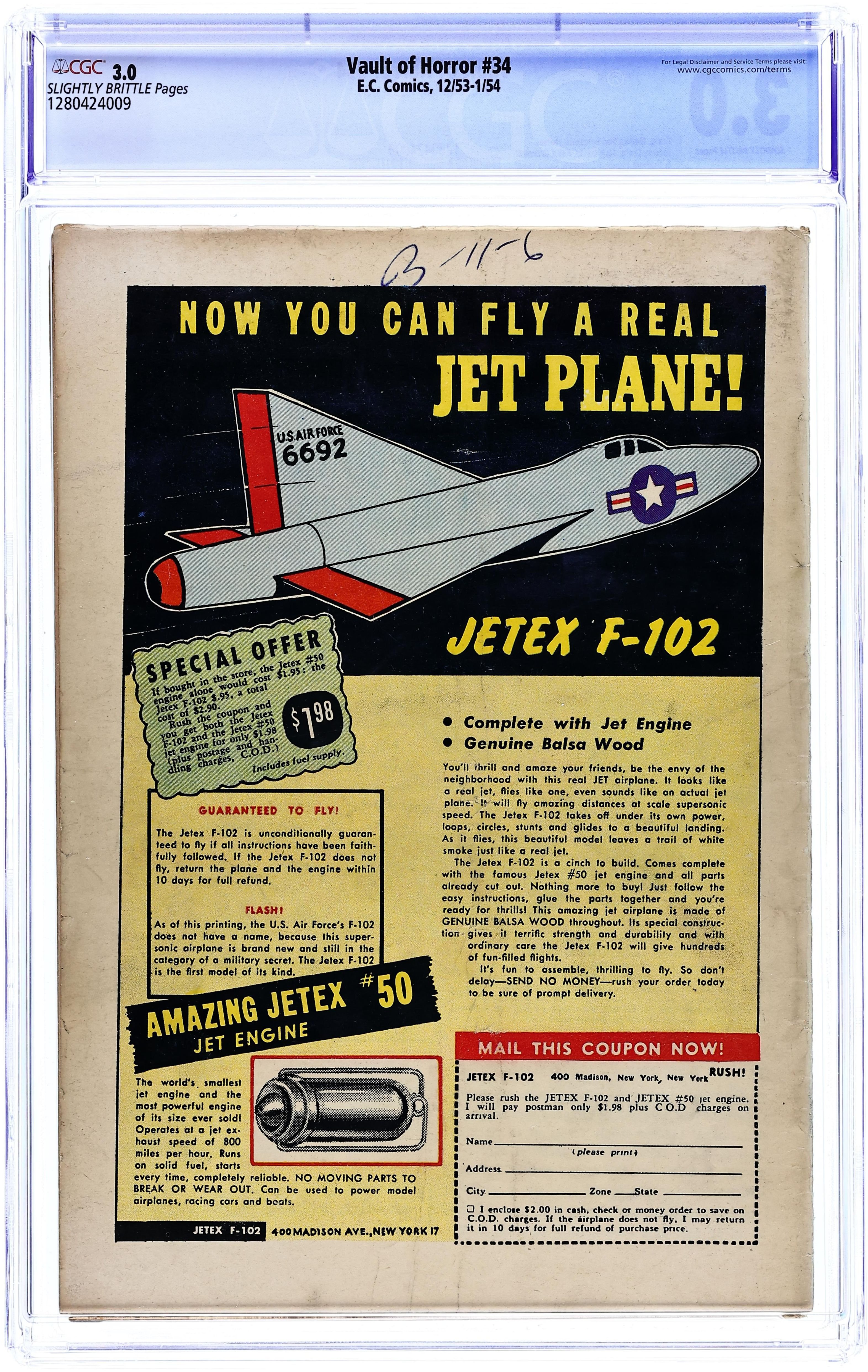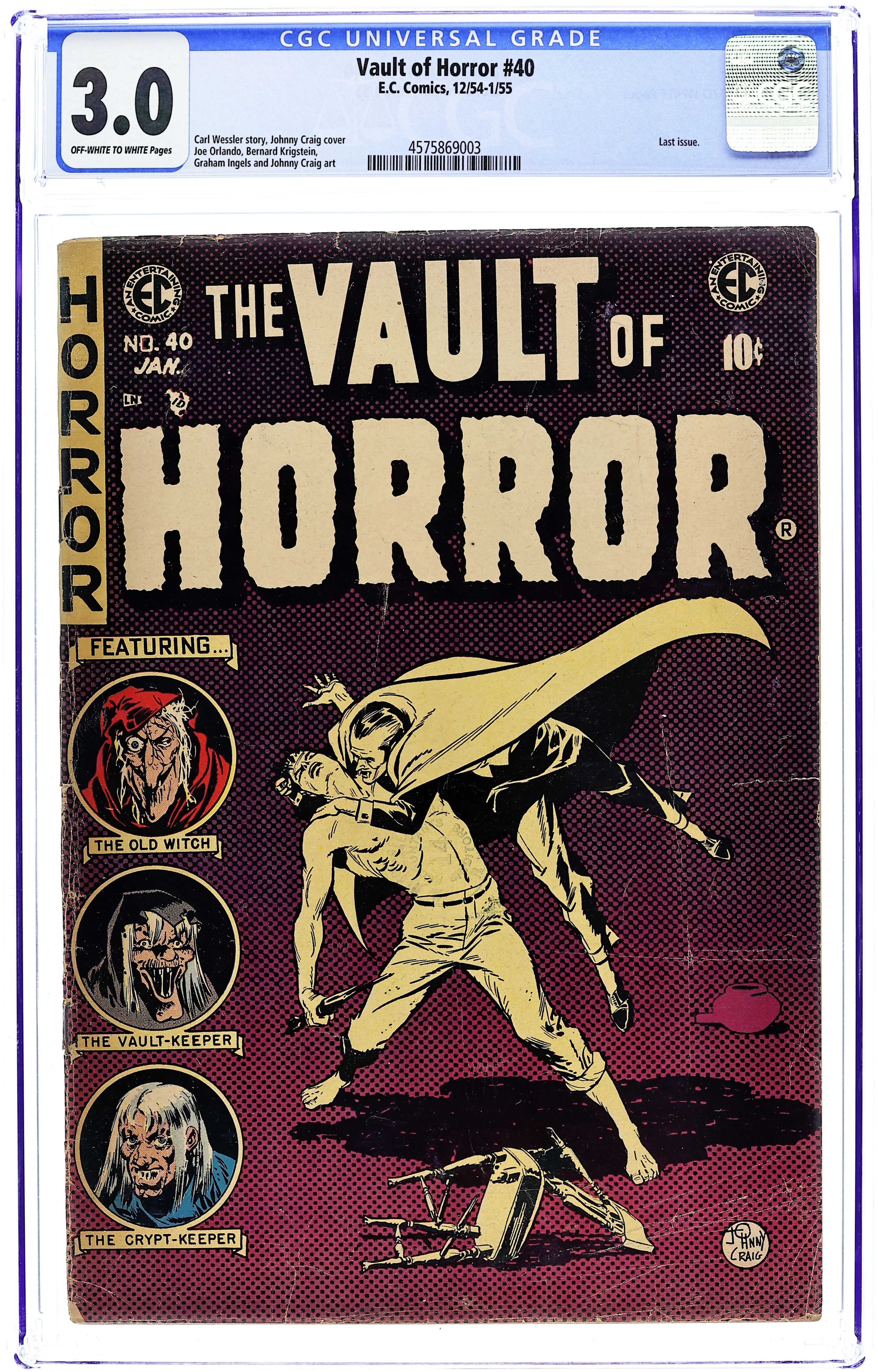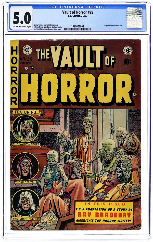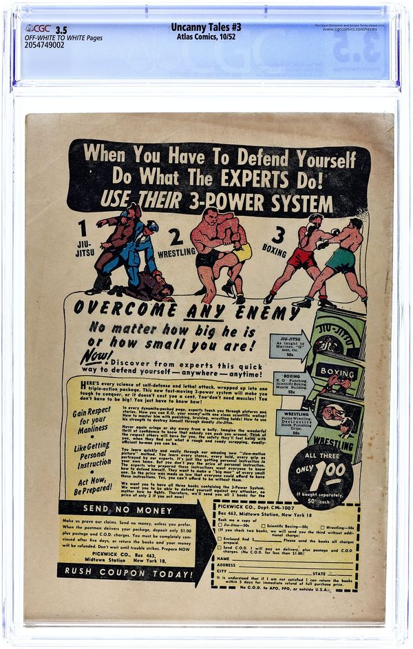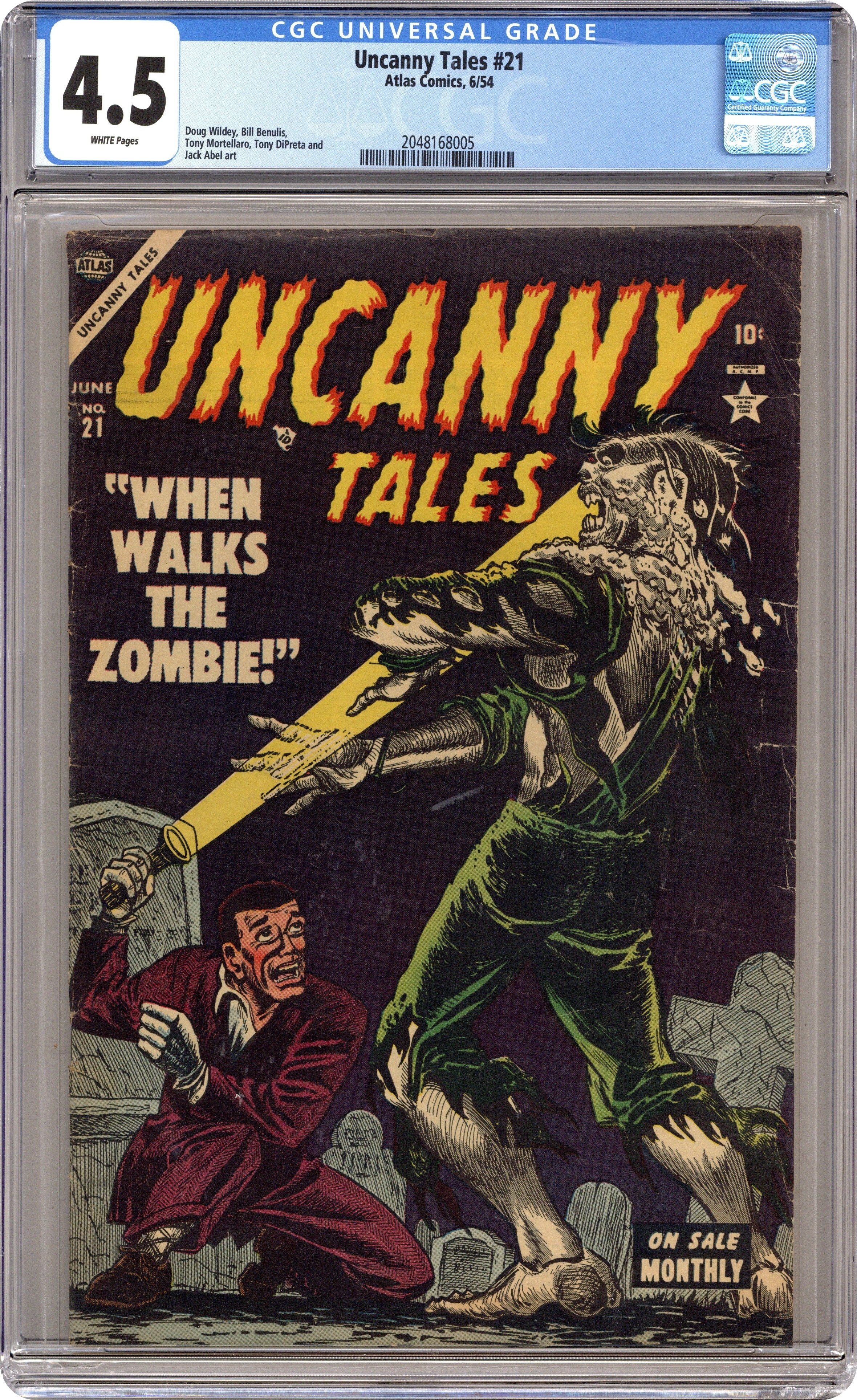 Stories by unknown. Art by Bill Benulis, Tony DiPreta, John Tartaglione, Tony Mortellaro, Doug Wildey and Jack Abel. The most uncanny tales ever told! In this issue: "When Walks the Zombie" with art by Bill Benulis and Jack Abel; 2-page text story "Accidental Death"; "The Torturer" with art by Tony DiPreta; "Tomb for Two!" with art by John Tartaglione; "Fair Exchange!" with art by Tony Mortellaro; and "Bored to Death" with art by Doug Wildey. 32 pages, full color. Cover price $0.10.