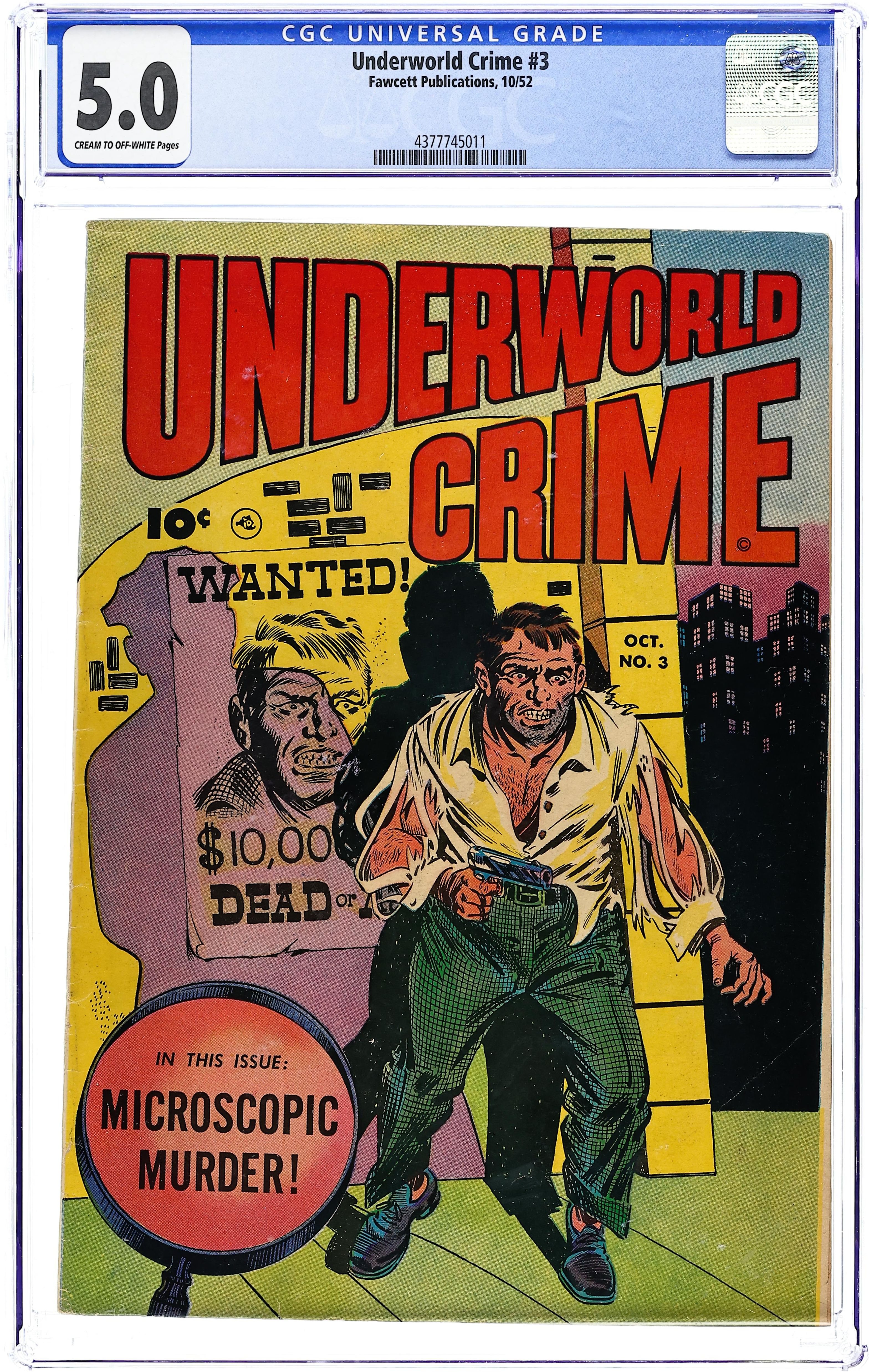 Starts Jan 3 Stories and art by Maurice Gutwirth and Rod Reed. Classic pre-Code crime comics from Fawcett. Chemist Henry wants to see if he can commit the perfect crime using acid, in a story that calls its main character "Henry Holmes," a possible reference to the infamous serial killer. When gangsters get involved in the gambling over college sports, it's not long before the athletes themselves are targeted by the Mob. Shot by mobster Tiger Jack, gunsel Marty survives, and sets out to get revenge on Jack by assembling a gang of "kill-happy morons who'll laugh at bullets." Microscopic Murder; The Fixer; Mink Murder Case; Hijacker. 32 pages, Full Color. Cover price $0.10.