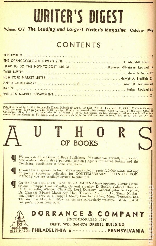 Writer's Digest (1921-Present F+W Publications) Vol. 25 #11Published Oct 1945 by F+W Publications.$3.90