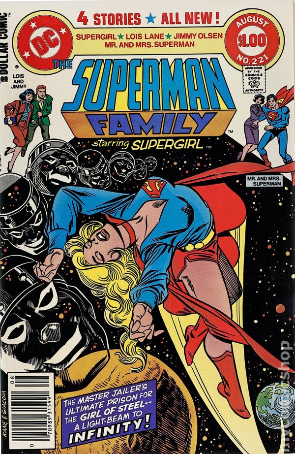 Newsstand Edition. Cover pencils by Gil Kane, inks by Frank Giacoia. A Trip on the Light Fantastic starring Supergirl, script by Paul Kupperberg, pencils by Win Mortimer, inks by Sal Trapani. Clark Kent Is Superman starring Jimmy Olsen, script by Paul Kupperberg, pencils by Jose Delbo, inks by Joe Giella. Fear for Sale starring Lois Lane, script by Tamsyn O'Flynn, pencils by Bob Oksner, inks by Vince Colletta. Arrows of Vengeance--Mr & Mrs Superman, script by E. Nelson Bridwell, pencils by Irv Novick, inks by John Calnan. 52 pgs. $1.00. Cover price $1.00.