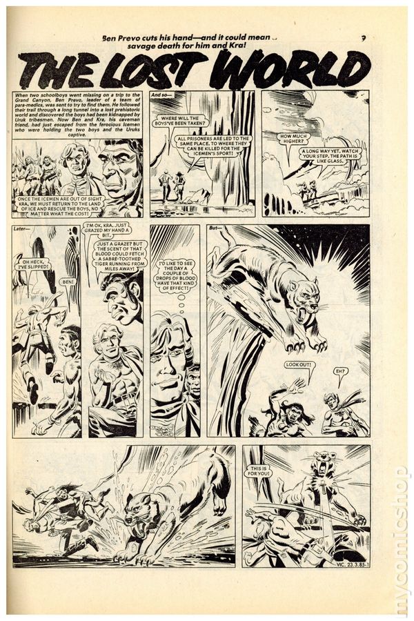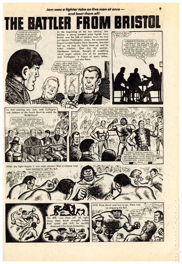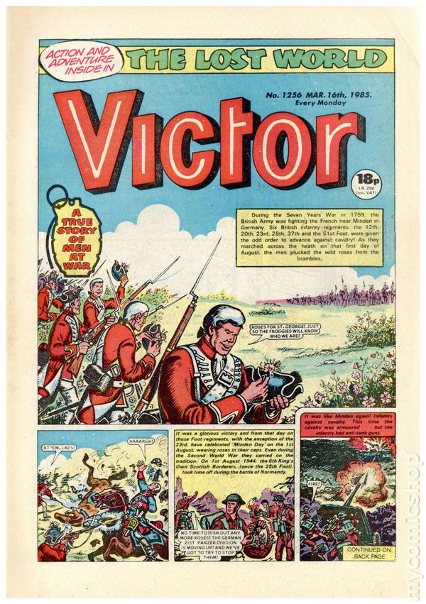 March 23, 1985. Published by D.C. Thompson and Co. Ltd. in Great Britain. Action/adventure stories feature the Quest of the Last Six Hundred, Johnny Gurkha, the Punch Pirate, Morgyn the Mighty, Legion of the Lost, Duke Farlow, Taneebo the Thunderbolt, and more. 8.5 x 11.75; black and white; 32 pages; 18p cover price.