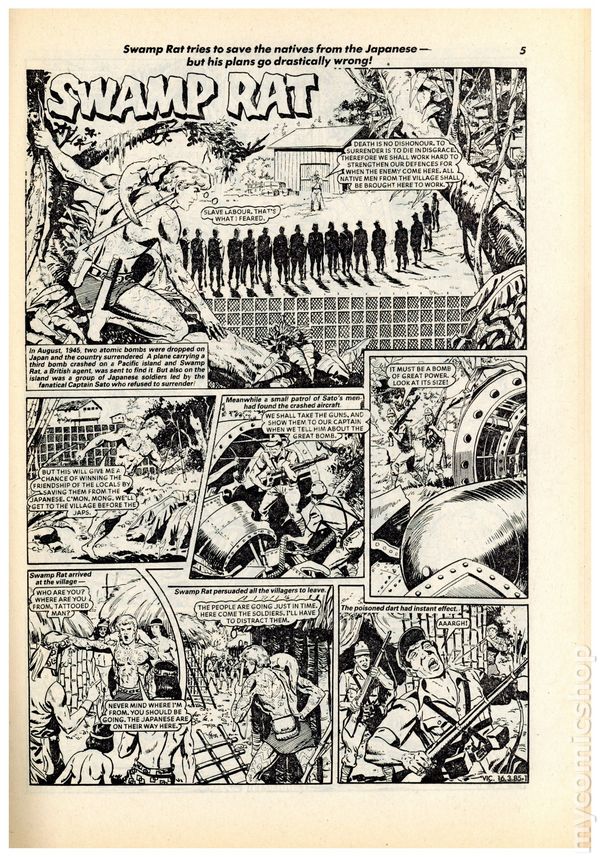 March 30, 1985. Published by D.C. Thompson and Co. Ltd. in Great Britain. Action/adventure stories feature the Quest of the Last Six Hundred, Johnny Gurkha, the Punch Pirate, Morgyn the Mighty, Legion of the Lost, Duke Farlow, Taneebo the Thunderbolt, and more. 8.5 x 11.75; black and white; 32 pages; 18p cover price.