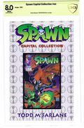 Written by Todd McFarlane and Scott Snyder. Art by Todd McFarlane, Greg Capulo, J. Scott Campbell, Jason Shawn Alexander, and Jerome Opena. Cover by Todd McFarlane. SPAWN MAKES HISTORY! With this 300th issue, SPAWN becomes the longest-running independent series in comic book history. To celebrate, legendary artists TODD McFARLANE and GREG CAPULLO return with ALL-NEW interior pencils, with additional art provided by JASON SHAWN ALEXANDER, J. SCOTT CAMPBELL, and JEROME OPEÑA, a cavalcade of celebratory covers, and additional writing by SCOTT SNYDER! And next month, RECORDS WILL BE BROKEN with SPAWN #301! 72 pages, full color. Cover price $7.99.