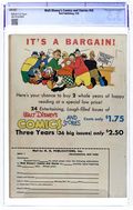 Cover by Walt Kelly. Stories and art by Walt Kelly, Carl Barks, Floyd Gottfredson, Merrill De Maris, Bob Karp, Jack Hannah, Ken Hultgren, George Waiss, Roger Armstrong, Dan Noonan, Manuel Gonzales, Sylvia Holland, Bill Wright, Bob Grant, and Al Taliaferro. Sometimes listed as Vol. 4 #1. The long-running vehicle for Disney character comics featured early work by Carl Barks, the legendary Good Duck Artist. In a classic Floyd Gottfredson story from the Mickey Mouse comic strip, Mickey competes with Montmorency for Minnie's affections. Huey, Dewey and Louie skip school to build a model airplane. In a story by Kelly, Gremlin Gus and the Widgets find mischief with a mousetrap. School Days; Bertie the Jinx; Donald Duck and the Gorilla; Over the Fence; Weaker Sex; No Profit; It's a System; The "Returns" of the Day; The Gremlins; Mickey Mouse: Love Trouble; Hollywood Chatter; Bargain Day; A Lesson in Horticulture; All Quiet on the Home Front; Strike Three!; Fire and Water; A Signal Delay; Mickey's Joggerfy Game; Highway Robberies; Snooky's Pocket; Forced Entry; Feathered Friend; Free Wheeling; Dead End; Donald's A-Drip; Food Will Win the War; Primer Page. 64 pages, Full Color. Cover price $0.10.