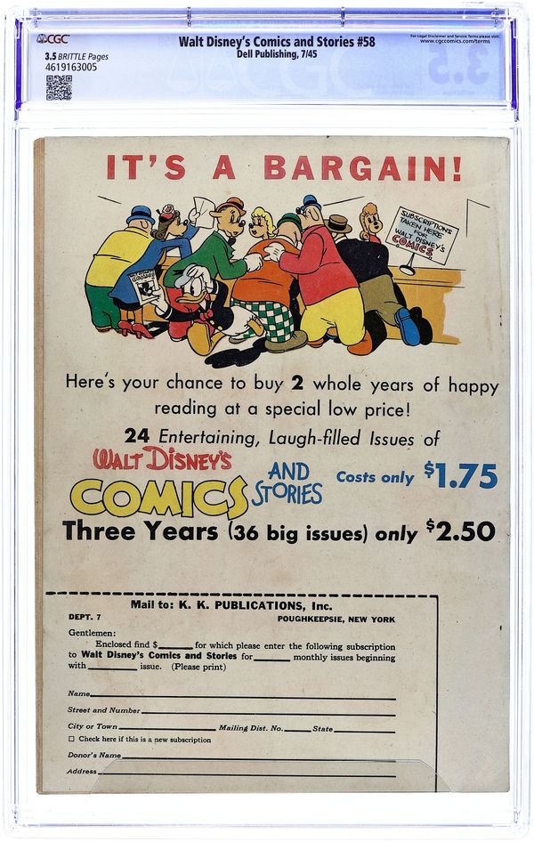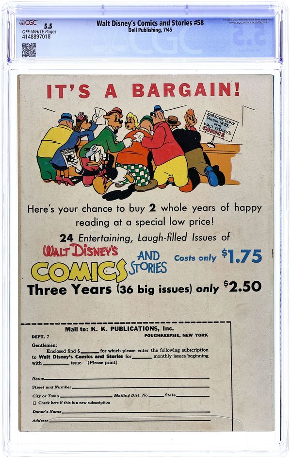 Tags: Disney Ducks & MicePublished Apr 1945 by Dell/Gold Key.Walt Disney's Comics and Stories (1940 Dell/Gold Key/Gladstone) 55 CGC 7.5