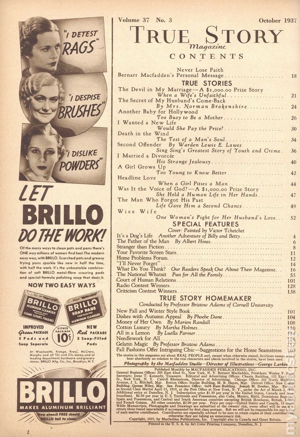 Oct. 1937. True romance stories with photographs. 8 1/2-in. x 11 1/2-in., 102 pages, B&W. Cover price $0.10.