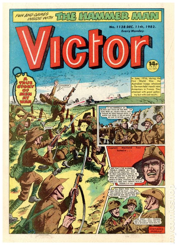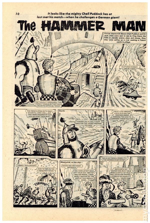 View scanDecember 11, 1982. Published by D.C. Thompson and Co. Ltd. in Great Britain. Action/adventure stories feature the Quest of the Last Six Hundred, Johnny Gurkha, the Punch Pirate, Morgyn the Mighty, Legion of the Lost, Duke Farlow, Taneebo the Thunderbolt, and more. 8.5 x 11.75; black and white; 32 pages; 14p cover price.