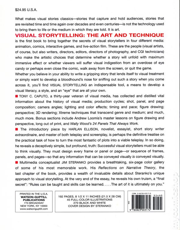 2nd and later printings. By Tony C. Caputo. Introduction by Harlan Ellison. Featuring a special essay by Jim Steranko. Filled with fascinating illustrations from such legendary comic book luminaries as Andrew Loomis, Jeff Smith, Neal Adams, Mat Nastos, Terry Moore, and Wally Wood, this step-by-step guide demonstrates everything an aspiring visual media artist needs to know in order to master sequential art. Softcover, 8 1/2-in. x 11-in., 208 pages, B&W. Cover price $24.95.