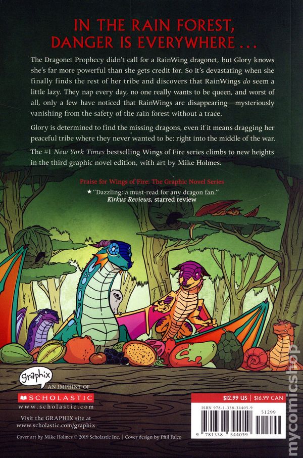 So when the dragonets seek shelter in the rain forest, Glory is devastated to find that the treetops are full of RainWings that nap all day and know nothing of the rest of Pyrrhia. Worst of all, they don't realize -- or care -- that RainWings are going missing from their beautiful forest. But Glory and the dragonets are determined to find the missing dragons, even if it drags the peaceful RainWing kingdom where they never wanted to be -- into the middle of the war.