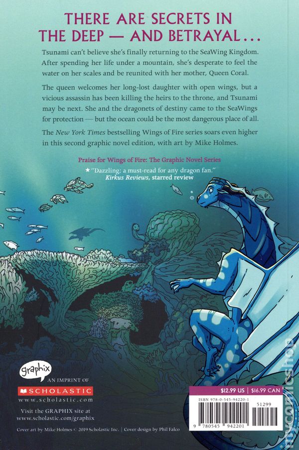 The lost heir to the SeaWing throne is going home at last. She can't believe it's finally happening. Tsunami and her fellow dragonets of destiny are journeying under the water to the great SeaWing Kingdom. Stolen as an egg from the royal hatchery, Tsunami is eager to meet her future subjects and reunite with her mother, Queen Coral. But Tsunami's triumphant return doesn't go quite the way she'd imagined. Queen Coral welcomes her with open wings, but a mysterious assassin has been killing off the queen's heirs for years, and Tsunami may be the next target. The dragonets came to the SeaWings for protection, but this ocean hides secrets, betrayal... and perhaps even death.