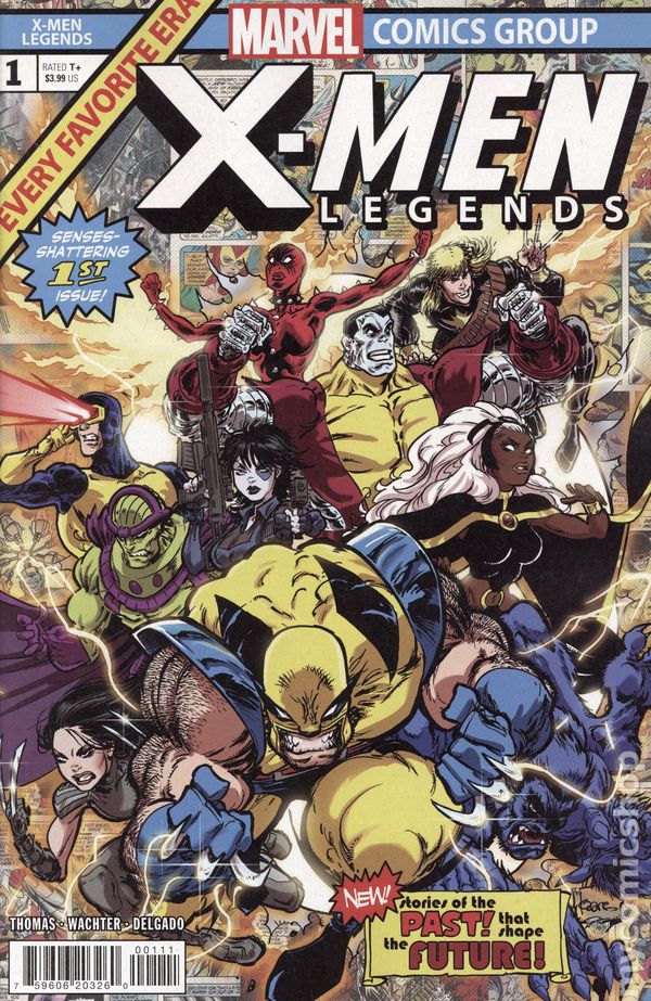 Written by Roy Thomas. Art by Gerardo Sandoval. Cover by Dan Jurgens. AN ALL-NEW TALE SET BEFORE GIANT-SIZE X-MEN #1! Before GIANT-SIZE X-MEN brought STORM, WOLVERINE, COLOSSUS, NIGHTCRAWLER and THUNDERBIRD to the team, Roy Thomas redefined the merry mutants in two seminal runs on the book. Now Roy, at long last, returns to the saga of the X-MEN to take us through the period between his run and GSX, for the first time detailing Wolverine's government missions before his recruitment by PROFESSOR X (including unrevealed detail on his battle with the green goliath in HULK #181/182), an untold episode involving BEAST and a host of missing mutants, and the secret behind Wolverine's costume! Kicking off an all-new volume of X-MEN LEGENDS by a host of legendary creators, this is but the first story in a run of new, in-continuity tales covering the length and breadth of X-Men history from the early eras to fan-favorite latter day sagas! Face front, True Believers! These are the missing links you've been looking for! 28 pages, full color. Rated T+ Cover price $3.99.