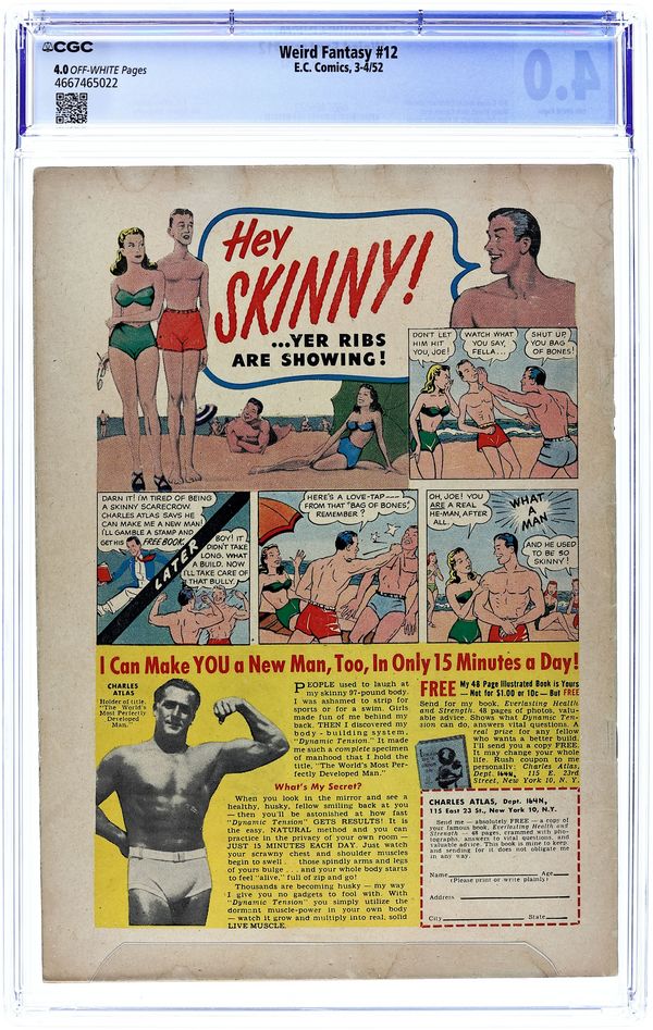 Final issue of the series (becomes Weird Science-Fantasy with issue #23). Cover art by Joe Orlando. "The Silent Towns," script by Ray Bradbury and Al Feldstein (adaptation), art by Reed Crandall; Walter surveys a little white silent town on the edge of a dead Martian sea, wondering what happened to all of its inhabitants; He suddenly hears a phone ringing, but he is too late to answer it; After this happens twice, he succeeds in answering a phone and finds a Miss Selsor on the other end, and he meets her, only to find that she is fat and ugly; An adaptation of a Ray Bradbury's The Martian Chronicles story. "The Freaks," script by Bill Gaines (co-plot) and Al Feldstein (co-plot and script), art by Jack Kamen; The freaks at a circus side show are sick and tired of the stares of the crowds, their snickers, their groans of disgust...and one decides to quit. But when the freak is found dead in his tent, the circus owners go in search for a replacement. "Public Service!" text story. "The Fossil," script by Bill Gaines (co-plot) and Al Feldstein (co-plot, script), art by Joe Orlando; Astronauts land on a deserted planet and begin hunting for archaeological evidence of the former inhabitants; They find a huge skeleton of a creature that apparently walked on all fours, but are baffled by its nature. "Derelict Ship," script by Bill Gaines (co-plot) and Al Feldstein (co-plot, script), art by Bernie Krigstein; Captain Vance Kaye is the commanding officer of an exploratory spaceship; He's obsessed with searching every derelict ship his crew discovers, but nobody knows why. 36 pages, full color. Cover price $0.10.