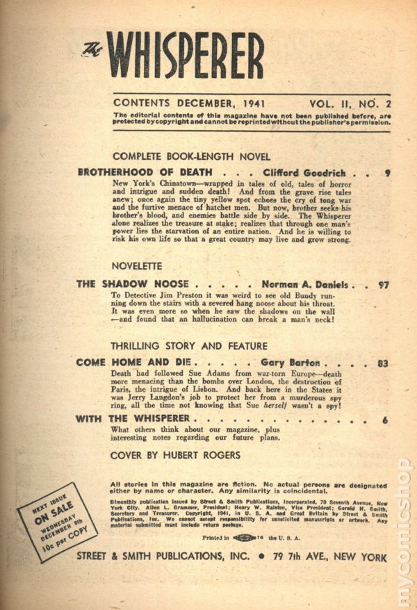 $158 Whisperer 1941 December. Pulp Clicking on the links to the eBay listings shown above and then making a purchase may result in MyComicShop earning a commission from the eBay Partner Network.