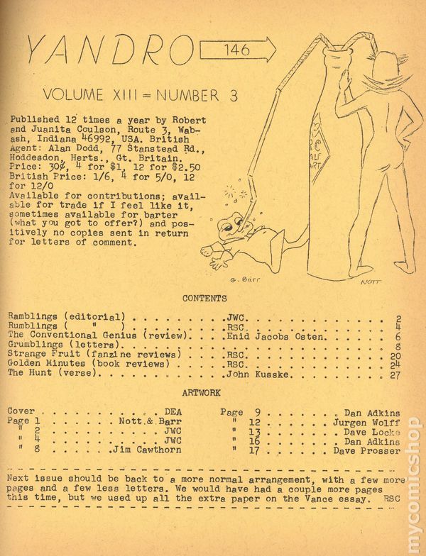 Published Mar 1965 by Robert and Juanita Coulson.