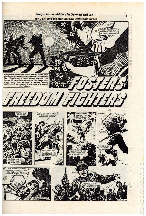 UK edition. Identical to US edition, but has 15p cover price. Cover art by Joe Kubert. One page of art by Romeo Tanghal. Beyond Gotterdammerung, script by Bob Haney, art by E. R. Cruz, set in 1945 at a German naval base dock during World War II, as well as in the Atlantic Ocean. An Army in Reserve, script by George Kashdan, art by Fred Carrillo; set in the Congolese Jungle in 1885. It's the Answer Man! by Bob Rozakis. Milt Snapinn bio by Mike Barr. 36 pgs.